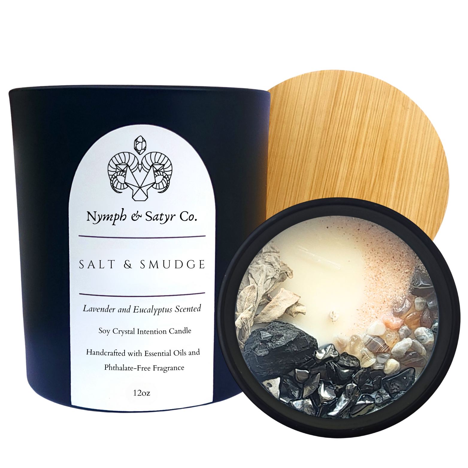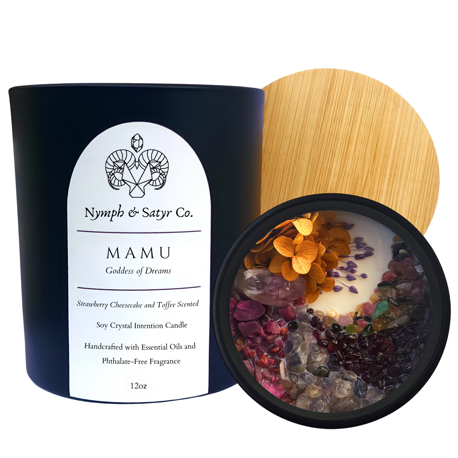 Made in United States Color: Black and Multi-Colored Fragrance Family: Earthy & woody Handmade: Yes Ingredients: soy wax, crystals, essential oils, phthalate-free fragrance, flowers/herbs/leaves Material: Glass Scent: Amber and Earthy & Woody Season: Year-Round Size: 12 oz Wax Type: Soy Product Language: English Weight: 0.86 kg (1.9 lb) Dimensions: 0 cm (0 in) Packaging: Recyclable