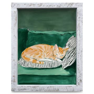 From Madeleine's 'City Series' where she hand-painted classic fonts from newspapers and journals from around the globe overtop a distinct illustration that is an atypical representation or symbol of each place. The Berlin print is based on a kitten she spotted sitting on a discarded copy of the Berliner Zeitung paper while traveling in Berlin. Digital print from an original painting. Printed on slightly textured 300gsm tintoretto gesso paper. A5 size (21 x 14,8cm or 8.3 x 5.8in) Signed & unframed.