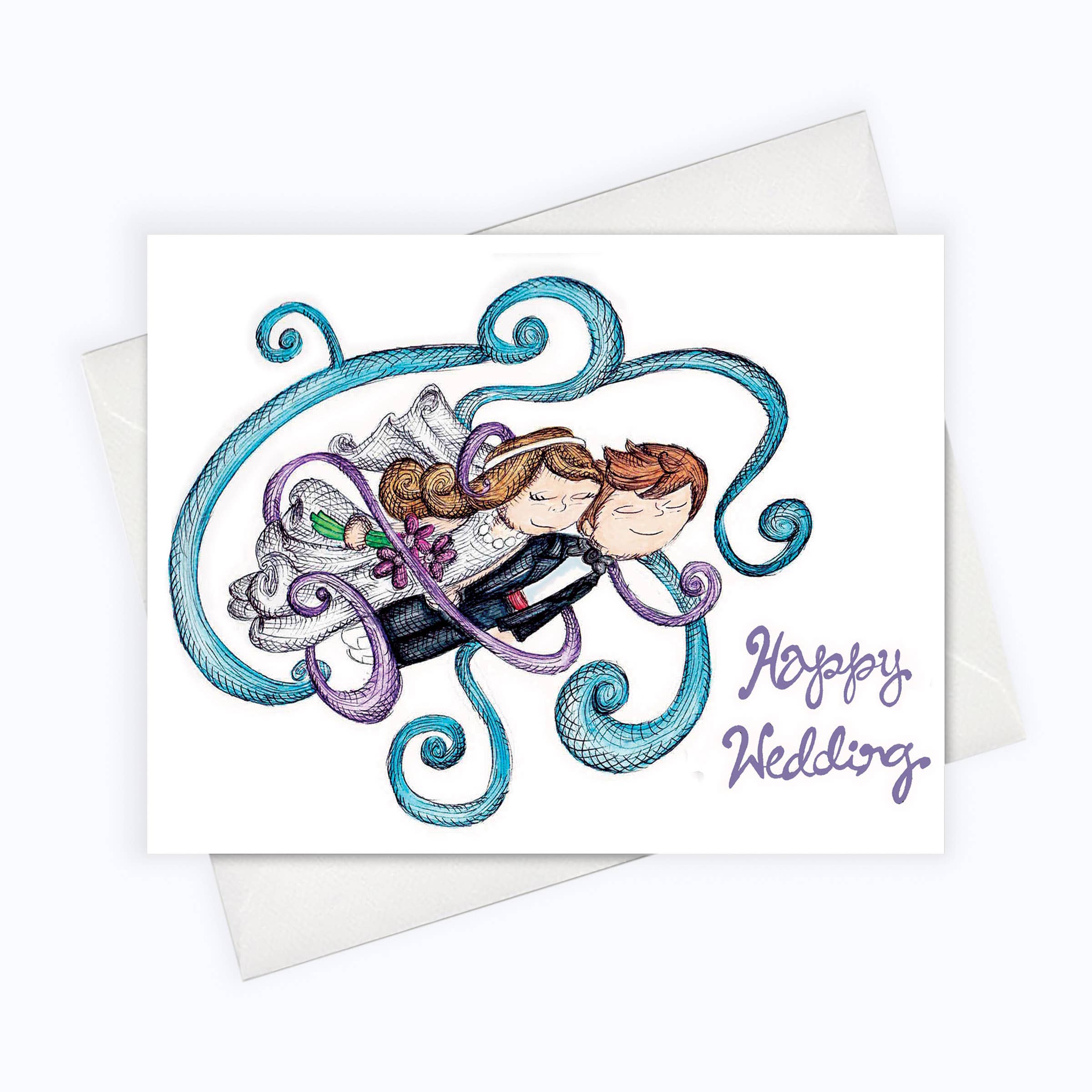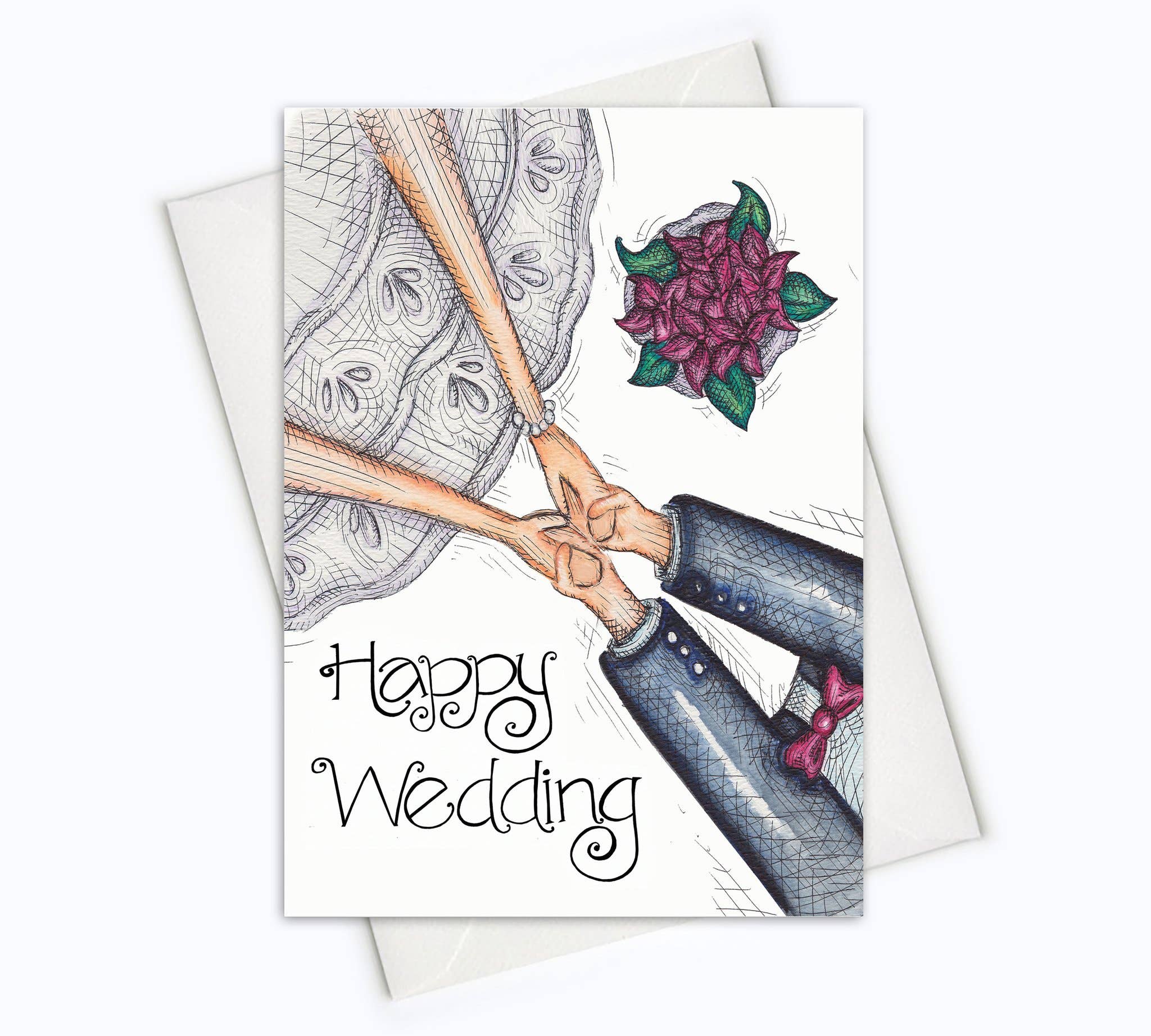Wedding Card For The Bride | Bride Card | For The Bride Greeting Card - Printed on 110 lbs. paper (card stock). - Blank card. - 4.25 X 5.5" (A2 size) - Alternatively, we also offer 5 X 7" size (A7 size). - Comes with a matching envelope inside an individual plastic sleeve / resealable cello bag. - Created from the original drawing using watercolor, watercolor pencils and ink and printed on card stock. - For customization please contact us.