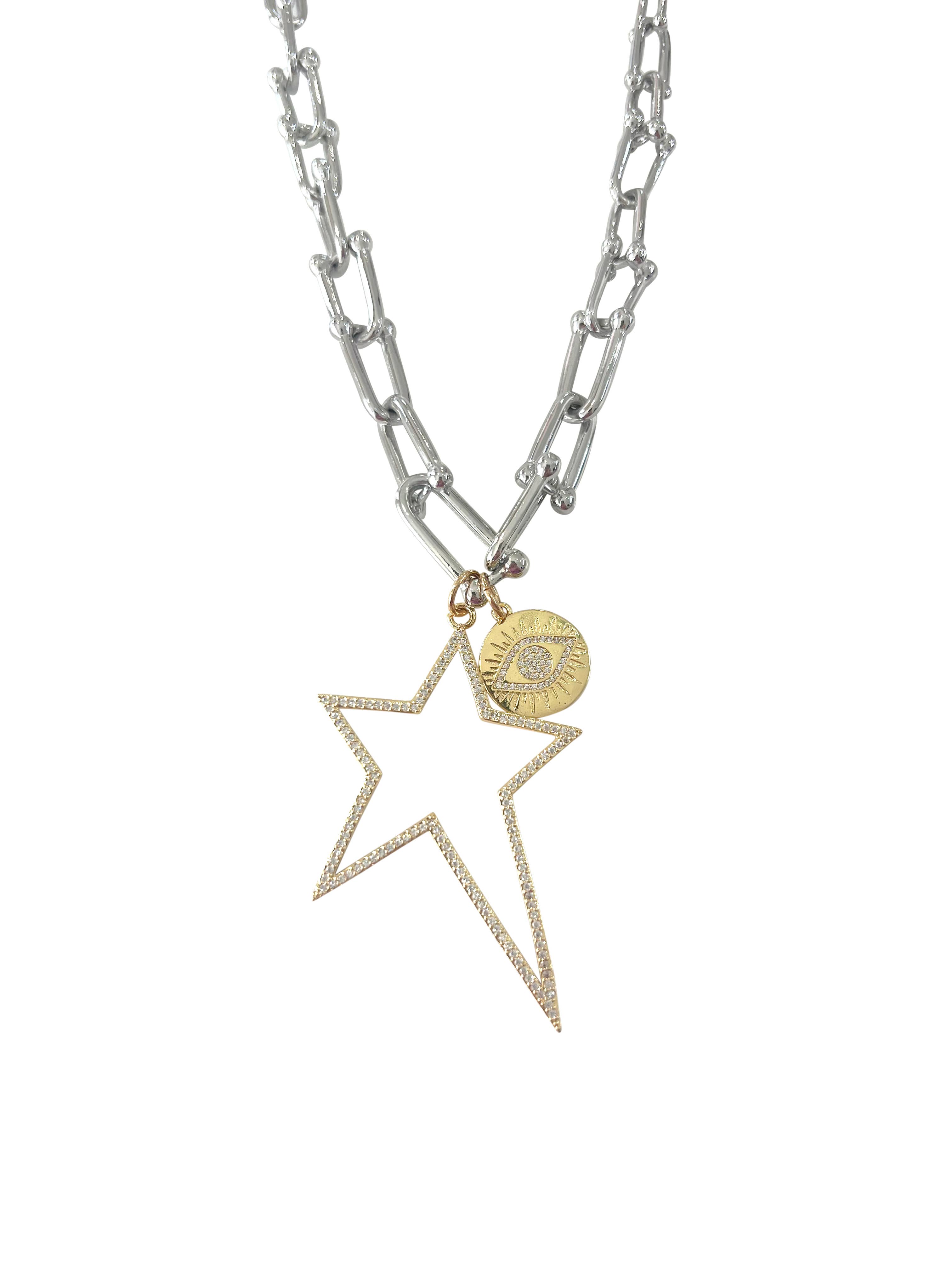 . Mixed metal plated Brass and Pewter base metal Multi strand Star necklace.