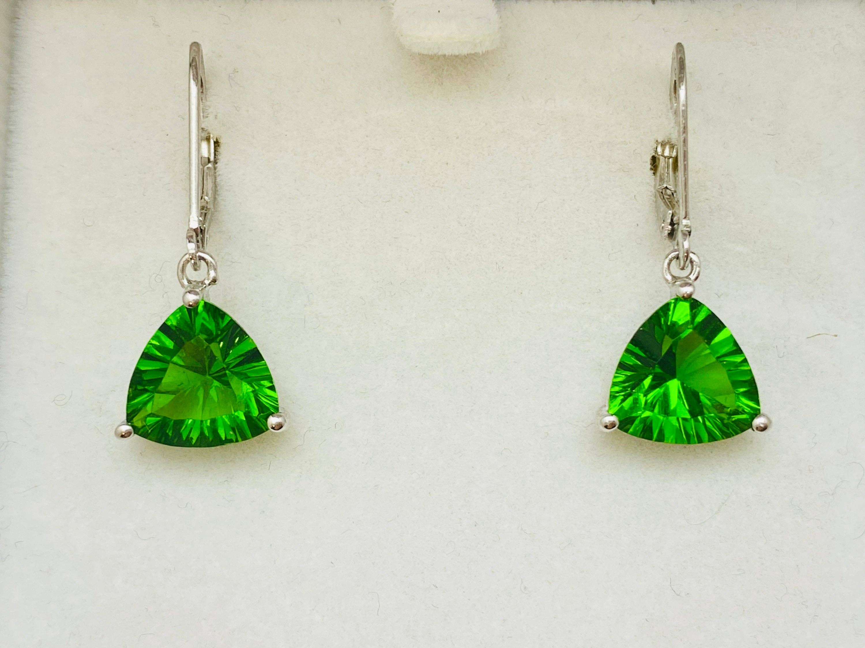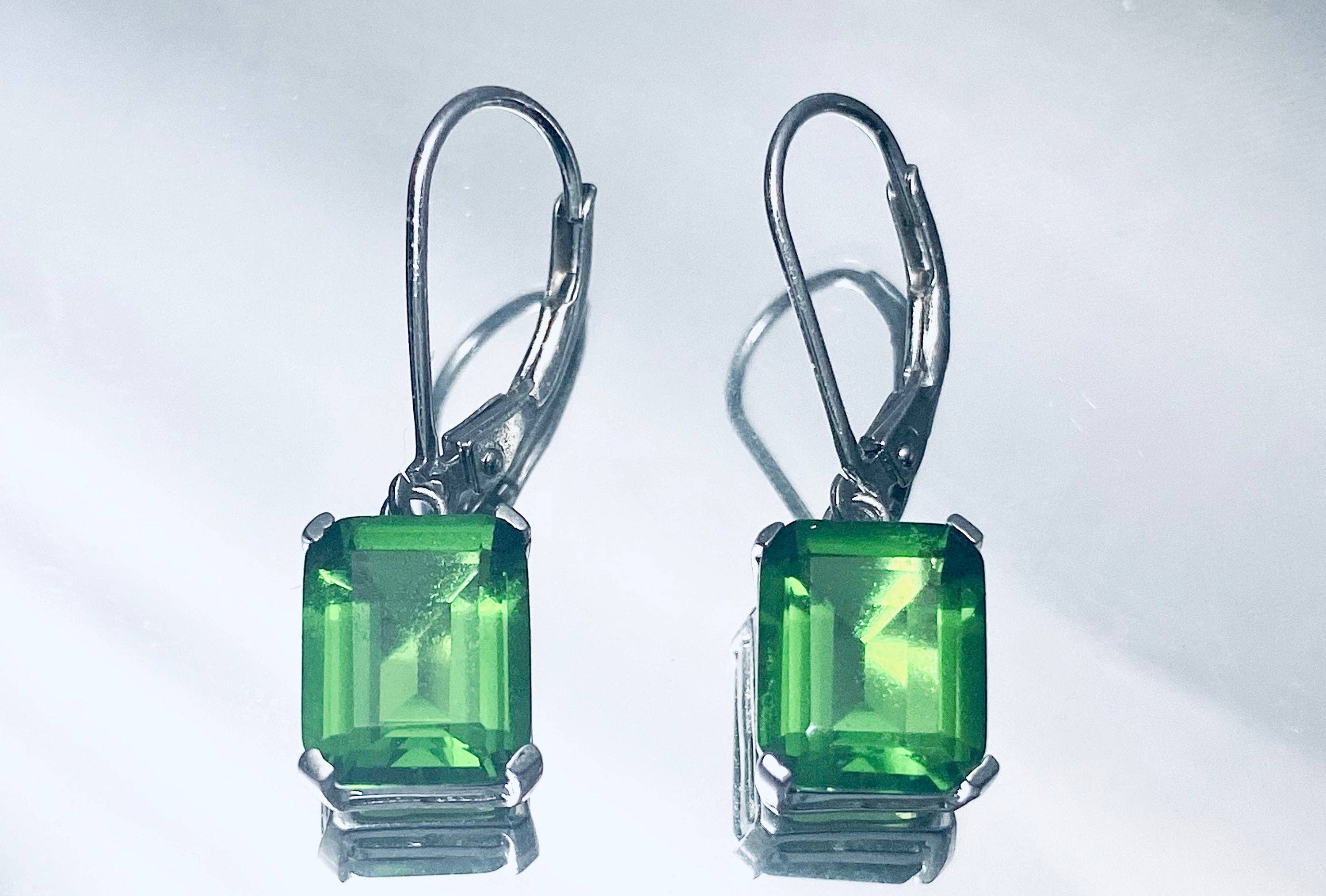 Product Information: Stone Type: Forest Green Helenite Stone Origin: Skamania County, Washington, USA Total Stone Weight: 3 Carats Stone Size: 7mm x 9mm each Metal: Solid 925 Sterling Silver w/ Rhodium Finished Silver Weight: 1.93 Grams Suggested Retail Price: $64.00 *The cutting of the stone might be different from what is shown on the photos, depends on the availability in stock. *Because we use natural stones, the stones may vary slightly in shape, size, and color. Customer Support: We offer our expert knowledge and services to our customers. And we are happy to answer any questions over e-mail! About Us: We are a family-owned and operated business based in San Francisco.