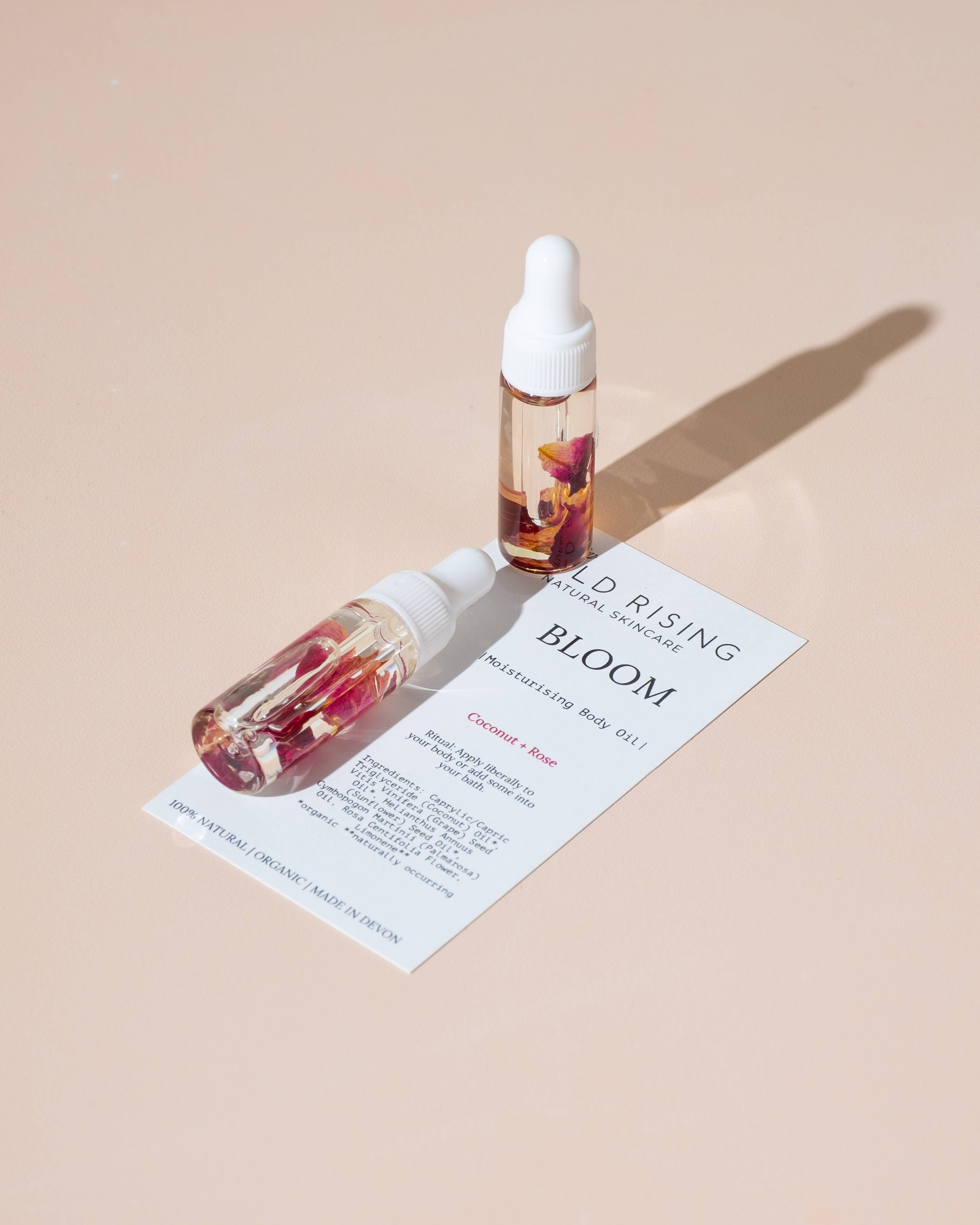 Whilst we have our full size body oils, our skincare minis are also very popular. They make perfect travel companions too. This is a luxurious Calendula infused blend of Coconut and Grapeseed oil together with organic essential oils Clementine & Patchouli. - 5ml glass dropper bottle - All miniatures are attached to a silk card containing instructions of use and ingredients. - Can also be a massage oil, bath oil and cuticle oil - Handmade in Devon - Available in 100ml bottles - Also available in Coconut & Rose Retail Price: £7.00