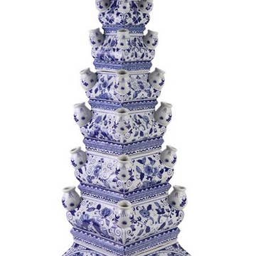 This uniquely shaped porcelain vase will bring a touch of class to any room. Perfect by itself, in pairs, or displayed with other porcelain pieces as a collection. Blue willow design on a white porcelain vase.
