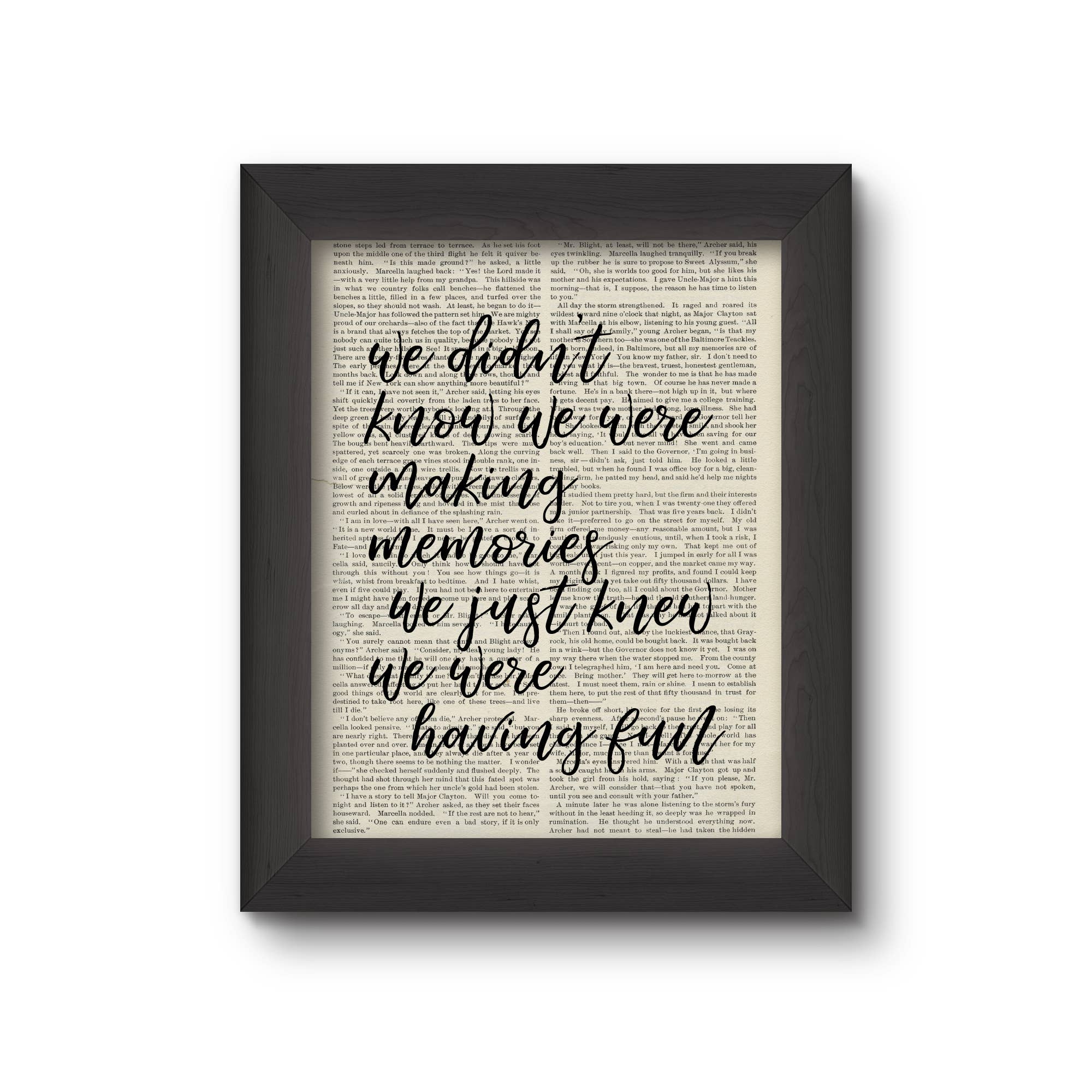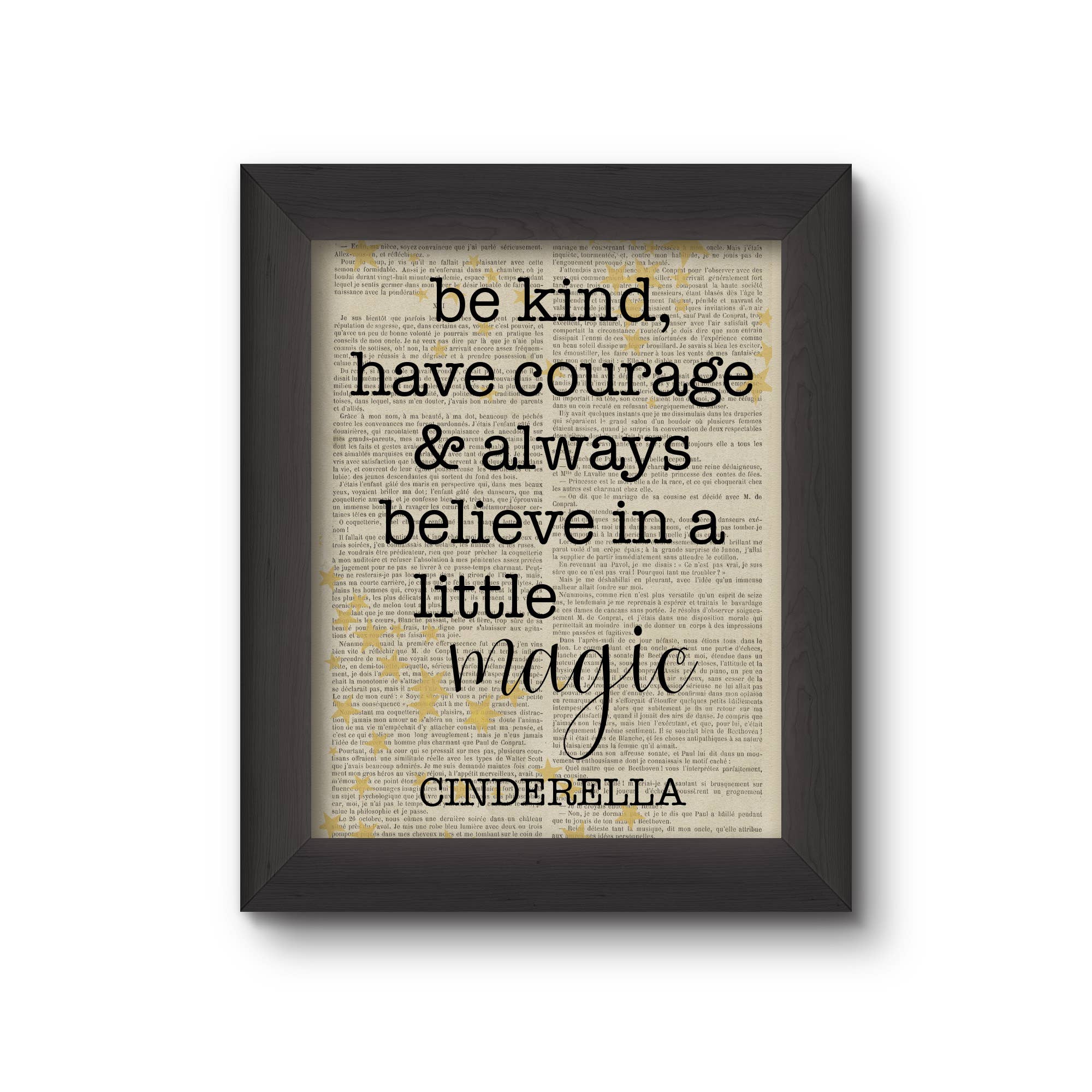We love to give new life to old books with messages of hope, love and strength. We up-cycle the beautiful, weathered pages to create unique prints that glow with the patina of another age, so no two are alike. The result is a beautiful and interesting home decor print. Definitely a conversation starter! Our prints are created using vintage books rescued from library recycling. The prints you purchase will be of the image you select, the vintage book page it is printed on will be different. We offer unframed prints that are ready for retail. Each print is carefully packaged in a resealable cellophane sleeve with rigid chipboard backing. The back of each packaged print features a "story sticker" that explains how and why we do what we do. We also offer framed prints. Each book page is carefully framed in a sturdy solid wooden black frame that is ready to hang on a wall or sit on a shelf. The back of each frame features our "story sticker" which explains how and why we do what we do