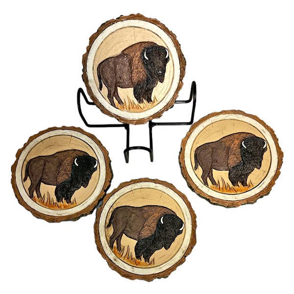 Bison Coaster, Aspen Wood, Laser Engraved, Buffalo Art