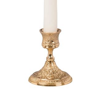 Candle Holder with a rholder so that you can carry it from room to room. It is an old-fashioned design, before the time of electricity. Holds a taper style candle.