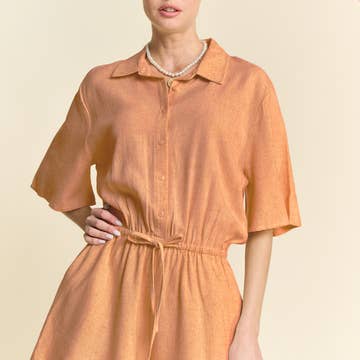 R5185 Solid Oversize Button Up Collared Romper