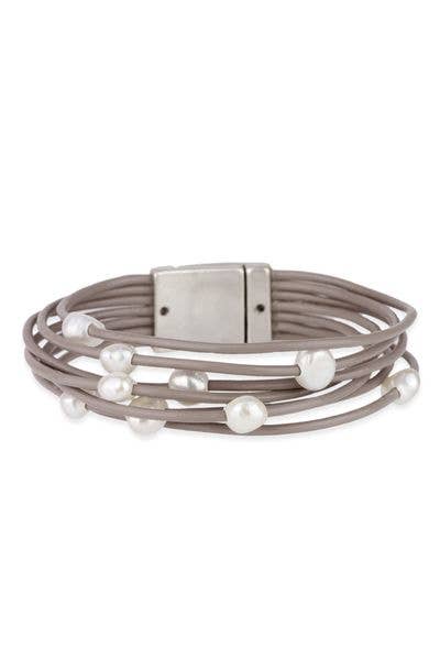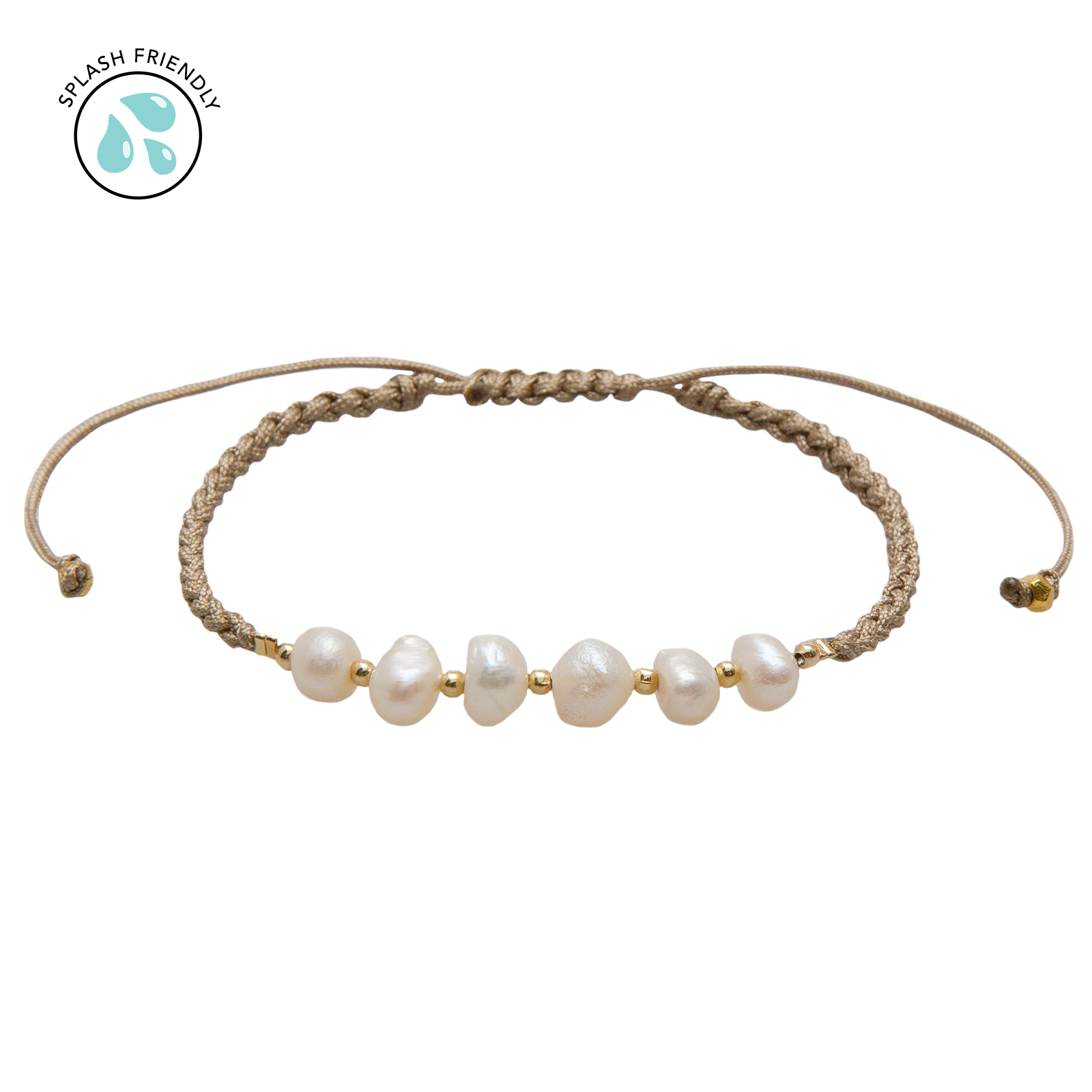 Adjustable Freshwater Pearl Bracelet on Waxed Linen Cord. Hand knotted by a woman owned artisan group using fair trade practices. Brown Cord or Grey Cord available options.