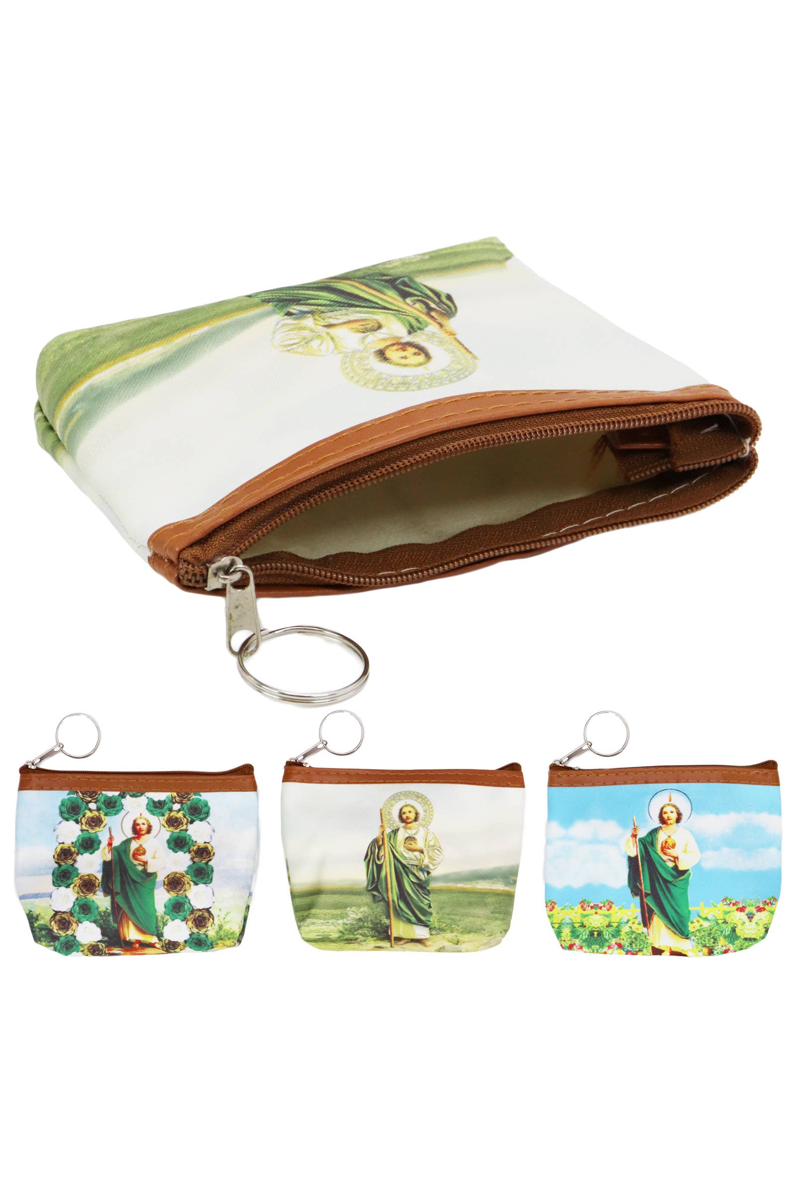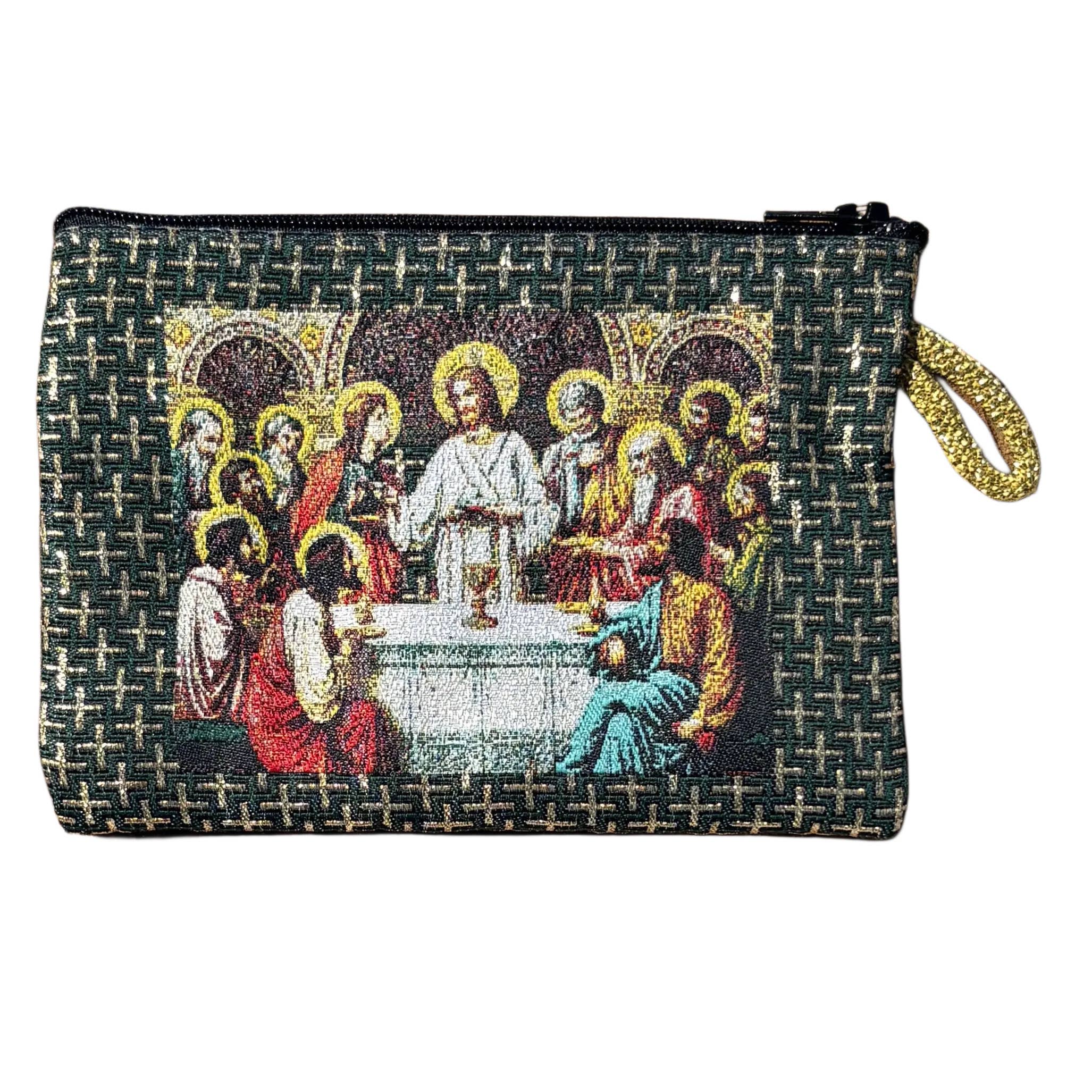 Printed on both sides is a beautiful depiction of Jesus Carrying The Cross Made of Tapestry material with inner lining and zipper Perfect for rosary beads, prayer books, cards, money, glasses or anything your customers' imagination can reach. Measures: 4” x 6” MOQ: 1