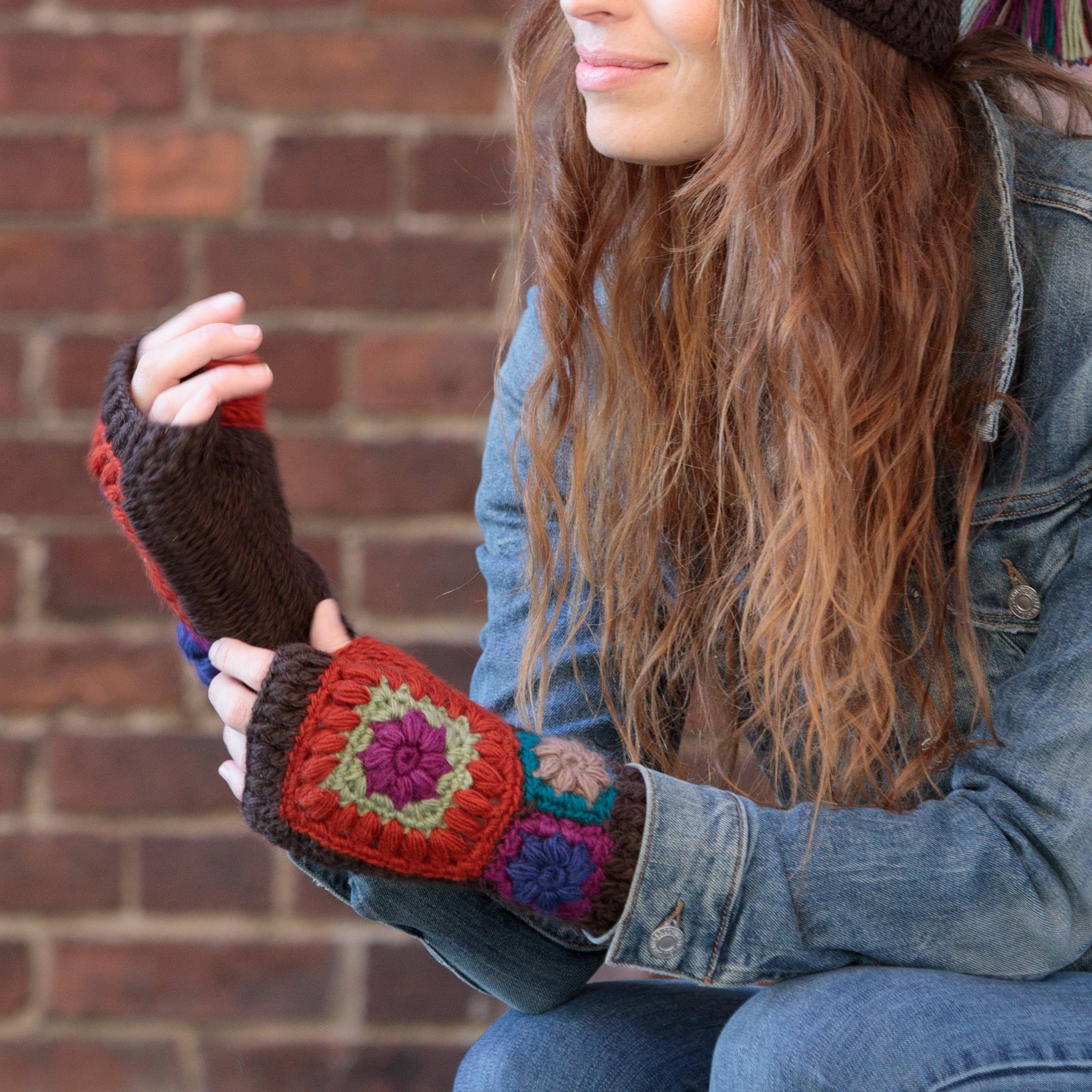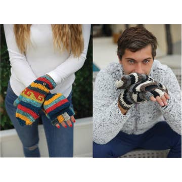 Description: Keep your hands and arms warm while transitioning through different seasons with these handmade, knitted wool fingerless gloves, mittens, and armwarmers. Each features a unique ombre rainbow design, with a fleece lining to ensure extra warmth in cold winter weather - perfect for boho styling or a festive holiday look. Matching- Beanie# 80529, Arm warmer # 60162 Details: * Construction:100% wool * Dimensions: 9 Inches X 3.5 Inches * Fleece lined * Hand knit * Made in Nepal