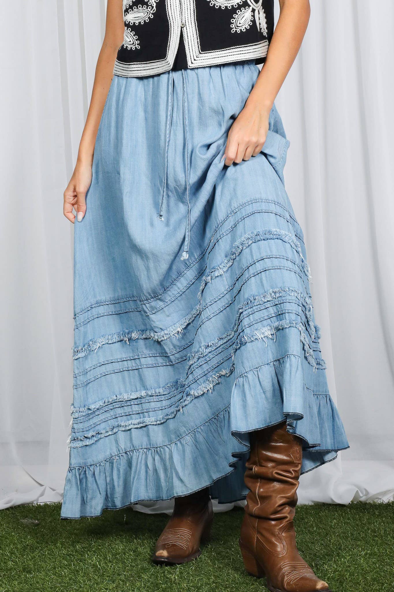 Western Boho Chic: Patchwork Midi Skirt