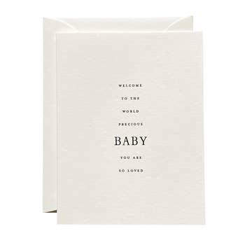 This card also comes with "baby" in pink or blue. PRODUCT DETAILS: * 4.25" x 5.5" (A2) * Printed on premium 100% PCW recycled card stock * Kraft 100% recycled envelope * Packaged in a clear certified compostable sleeve * Blank inside All of our cards are proudly designed and printed in the USA. Because of the nature of 100% PCW recycled paper, you may see small characteristic flecks, making each card unique!