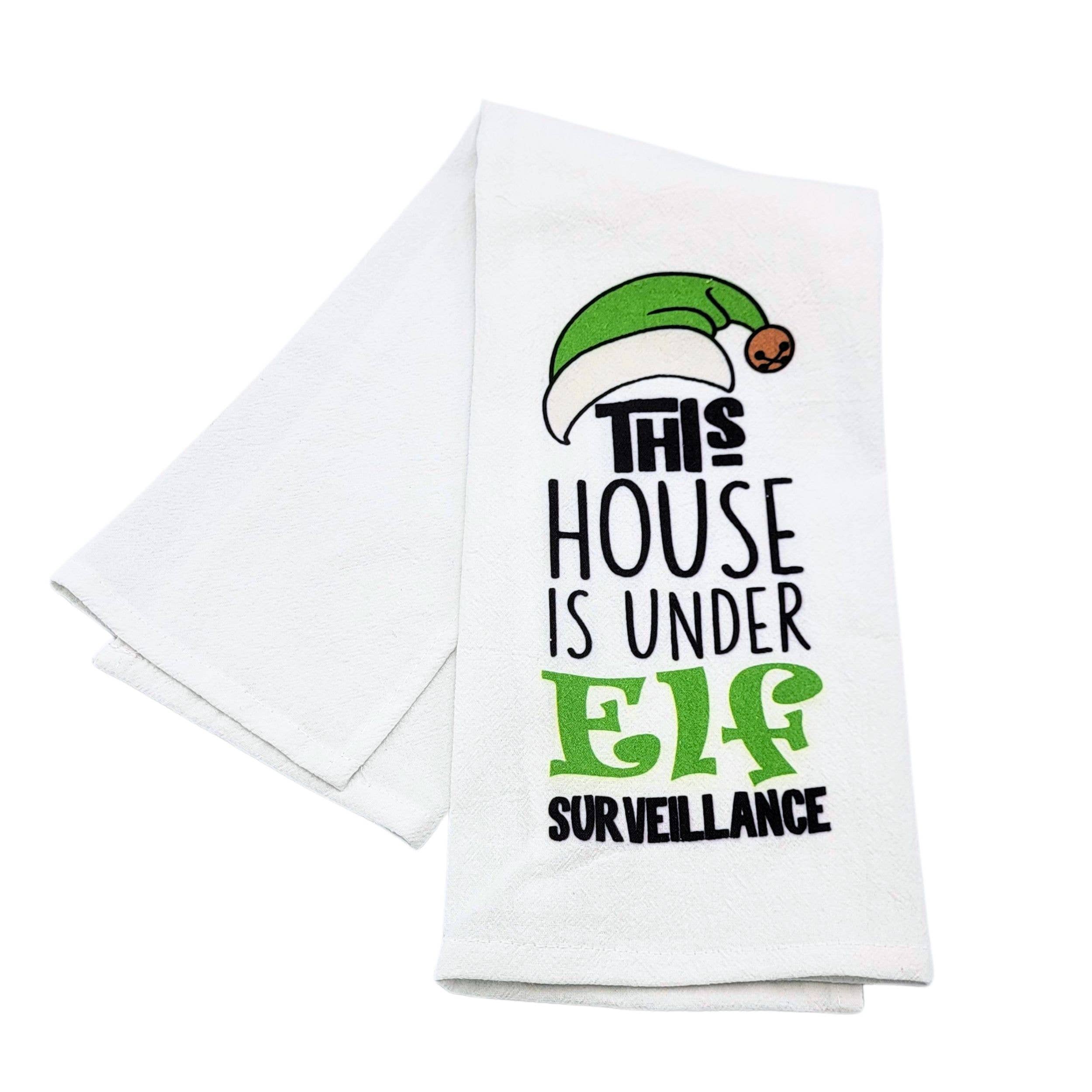 This House Is Under Elf Surveillance Christmas Tea Towel