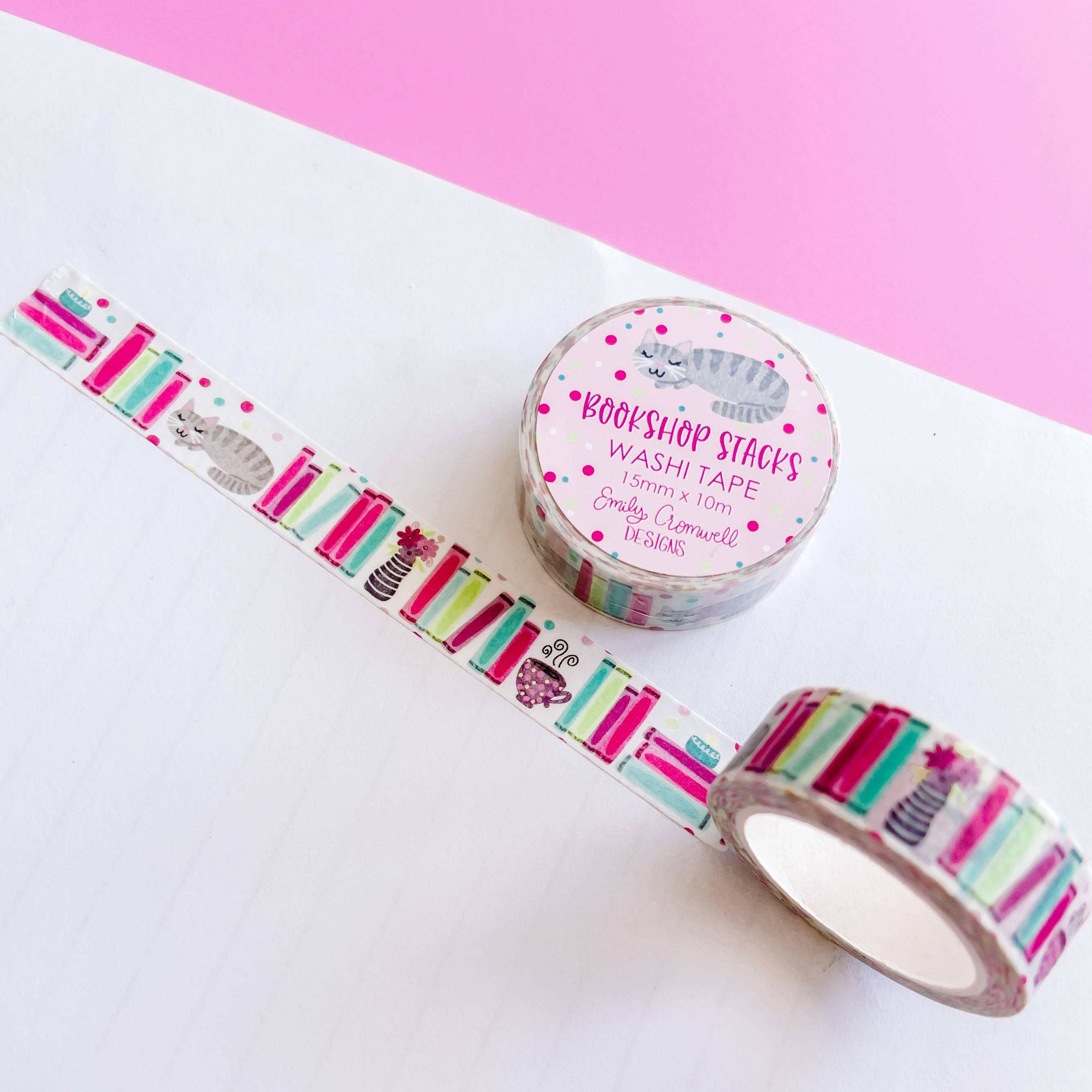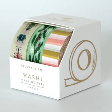 A roll of illustrated washi tape, available in three color variations. Washi tape is perfect for stationery and craft lovers! Unlike regular tape, washi tape removes without leaving residue. - 15mm wide x 10m long - 1 sided washi tape - Arrives shrink-wrapped with an illustrated circle sticker on the top