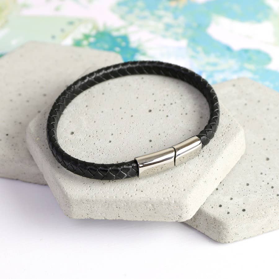 Leather bracelet. With a polished stainless steel 'trigger' clasp. From the Lisa Angel Jewellery Collection.
