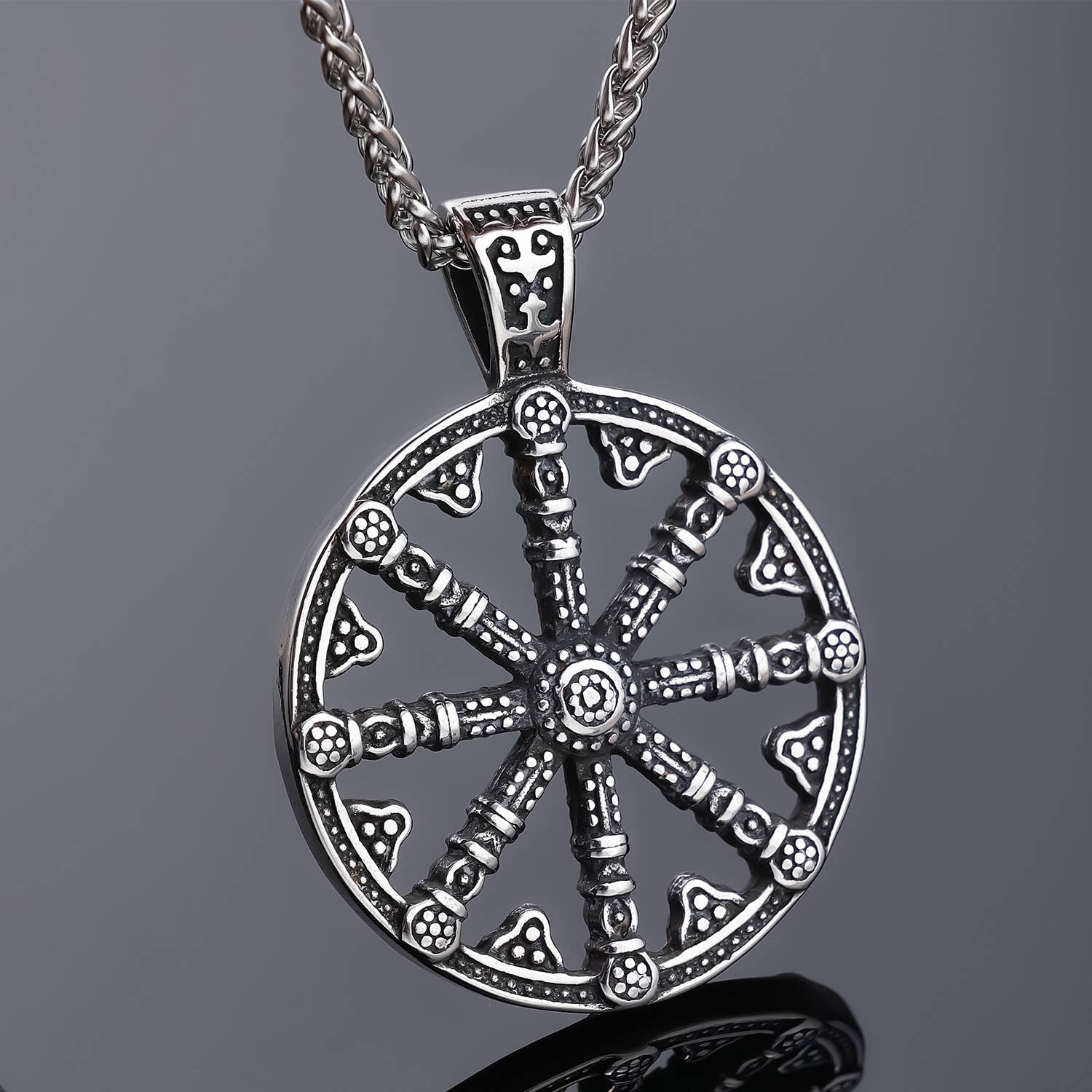 Discover the rugged allure of Viking-inspired jewelry for men, designed to evoke the strength and valor of ancient Norse warriors. -ID: GEM-WJ-NE2442 -Material: Stainless Steel -Weight(s): 22.5g -Chain Length: 60cm -Quality: Excellent -Lead Free, Nickel Free