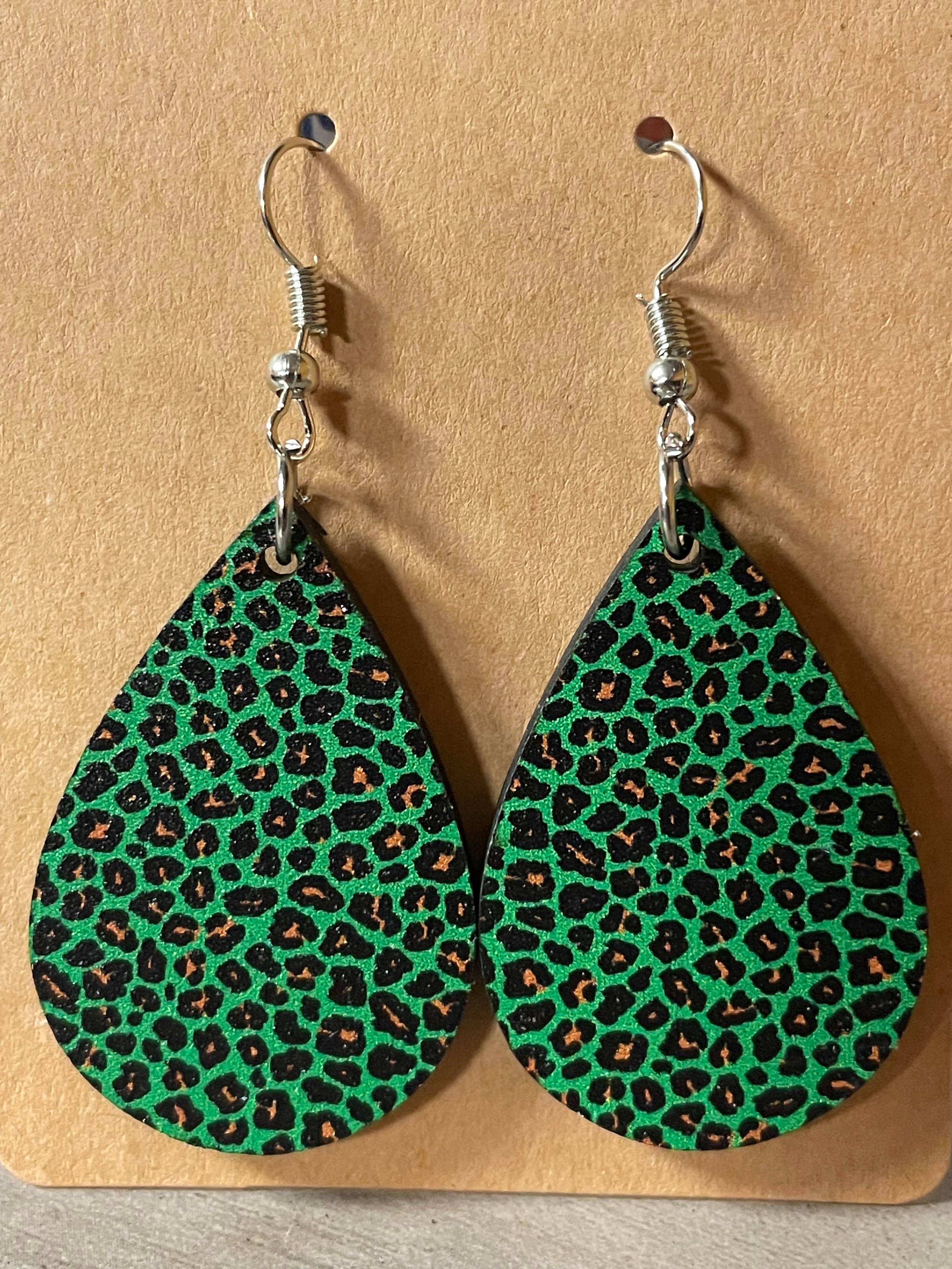 These earrings are a unique geometric design. The top is a beautiful shimmery pink leather and the flower petal is a beautiful mint leopard print. At Bushley’s Beauties, we offer a large variety of accessories for every look and style. Leather- Our 100% real Leather products are made by hand using the highest quality treated leather. By taking the extra step in treating our leather, not only does it produce an attractive earring, it also increases the durability of our product. Leather is a great option for customers who want a stylish lightweight option. Suede- Unlike Leather, suede has a smooth finish that is soft to the touch. Suede is perfect for the customer who desires a soft matte look.
