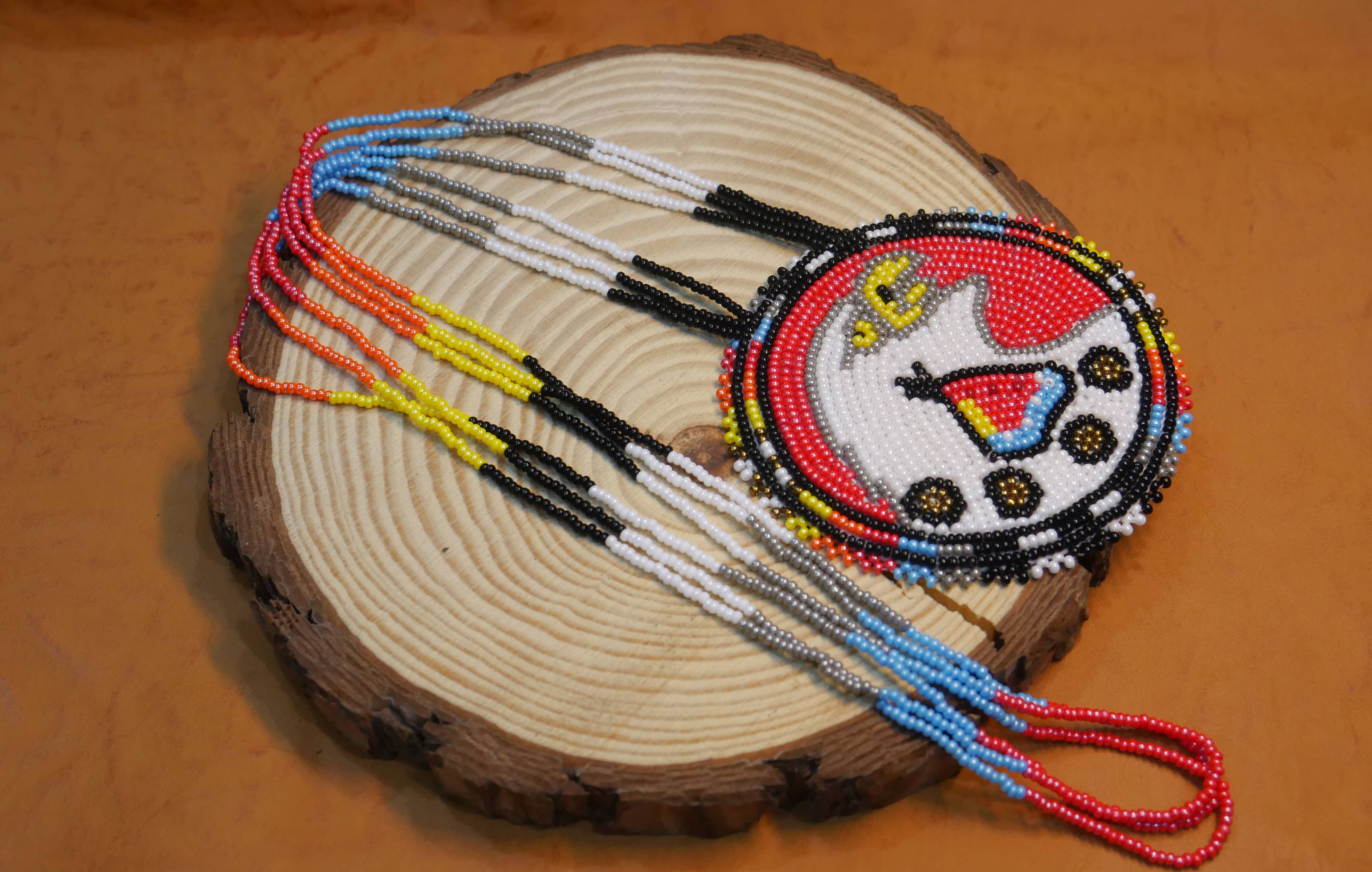 Native American White Bear-Paw Beaded medallion Necklace