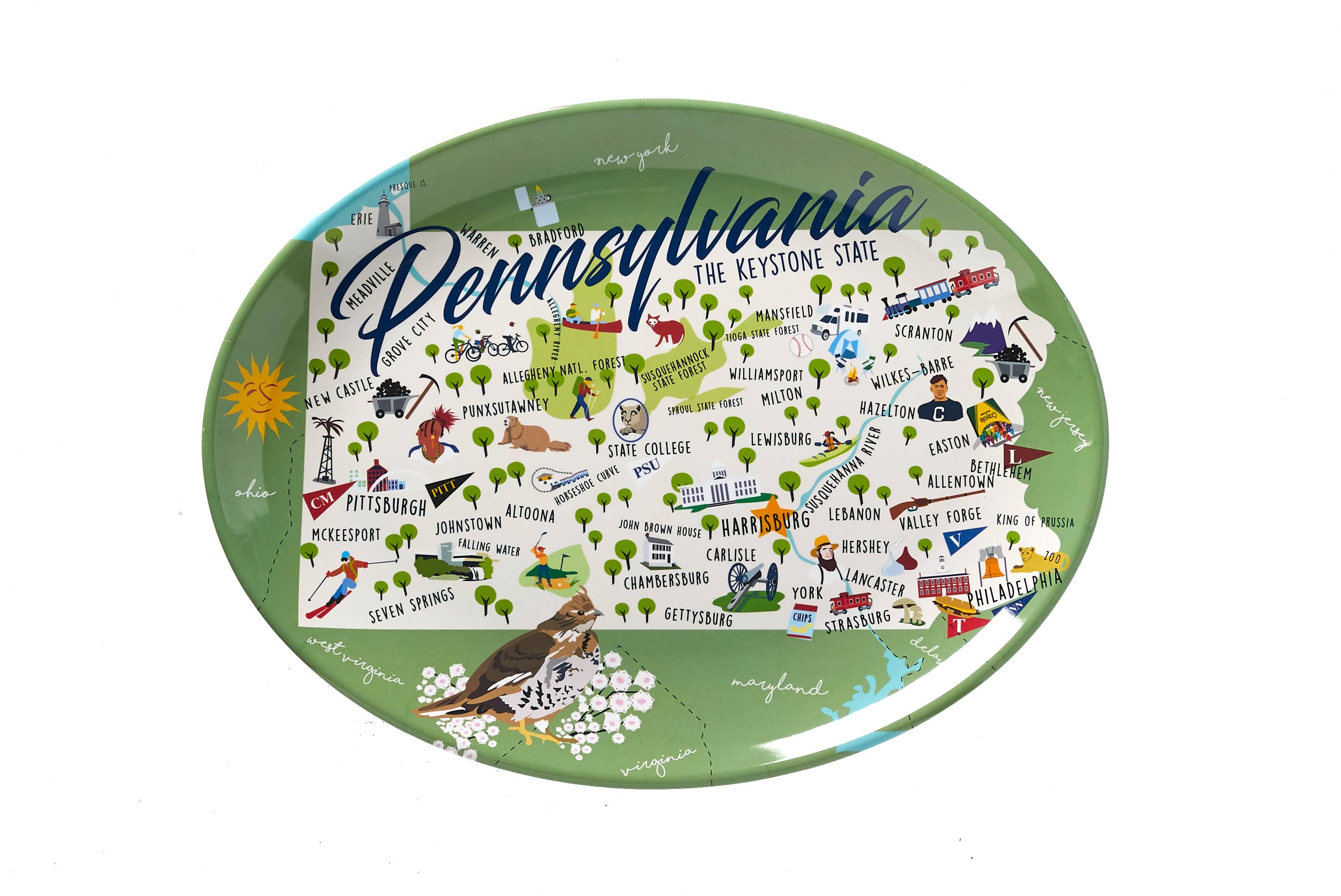 Pennsylvania Souvenir 8in Cheese Plate with Spreader