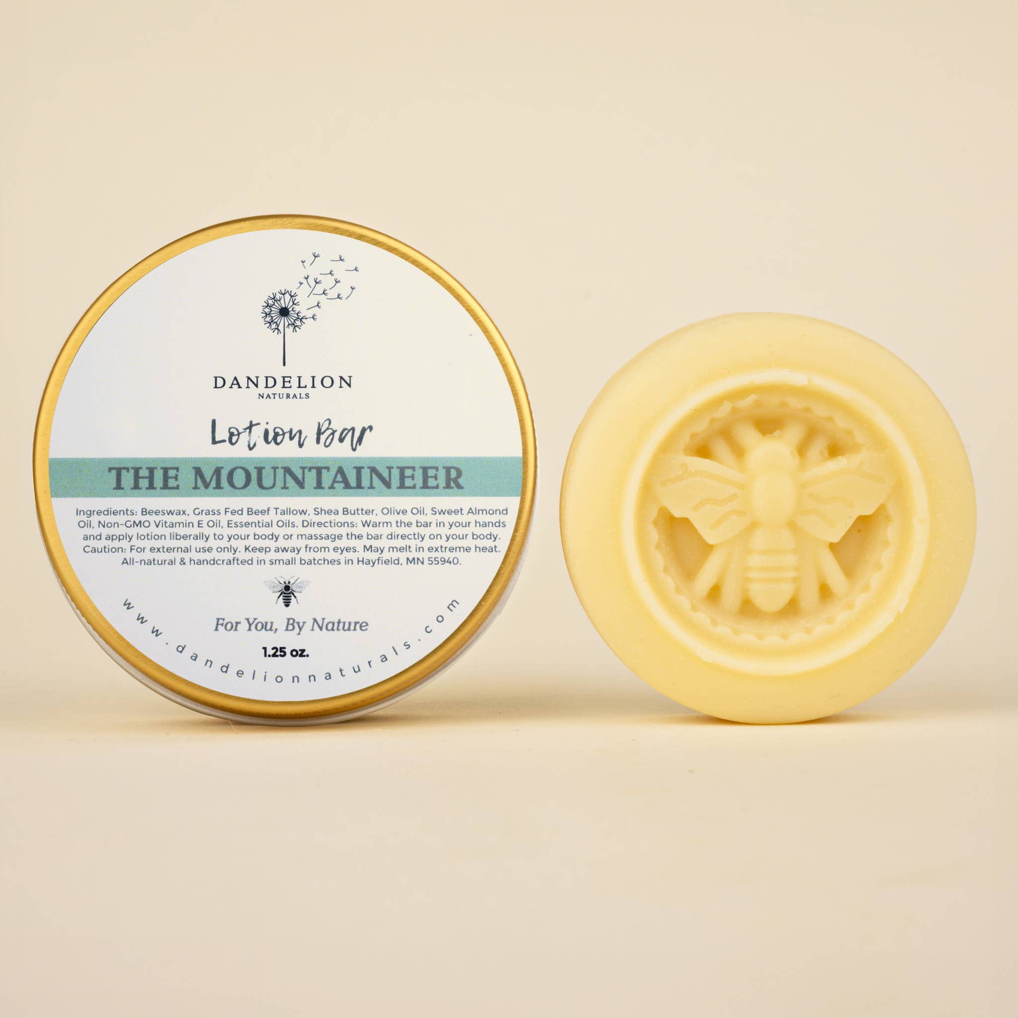 100% Natural lotion bar. Use Just Bee's Lotion Bar to lock in natural moisture and defend against moisture loss with a natural protective barrier. Gently massage into skin after a bath or use anytime throughout the day. Size: 1.75 oz / 49g. Naturally Gathered Beeswax, Organic Safflower Oil, Organic Coconut Oil, Organic Jojoba Oil, Organic Evening Primrose Oil, Organic Meadowfoam Oil, Vitamin E Oil.