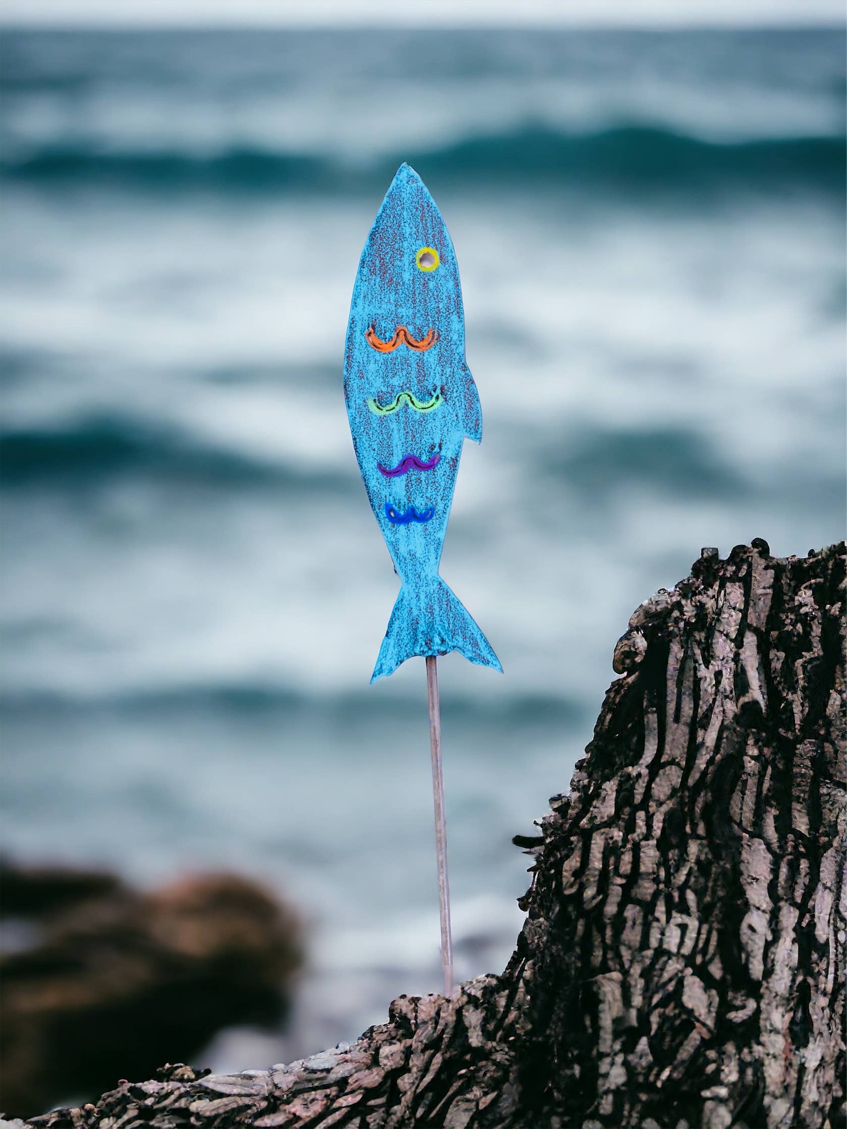 Custom word magnet. Fish painted in assorted colors. Tell us what word you want. Namedrop. Made in the USA. We use recycled metals that are sourced all over the United States. Small Batch Maker Tags: sustainable, impulse buys, vacation souvenirs, explore, RV, Camper, outdoor gifts, travel souvenirs