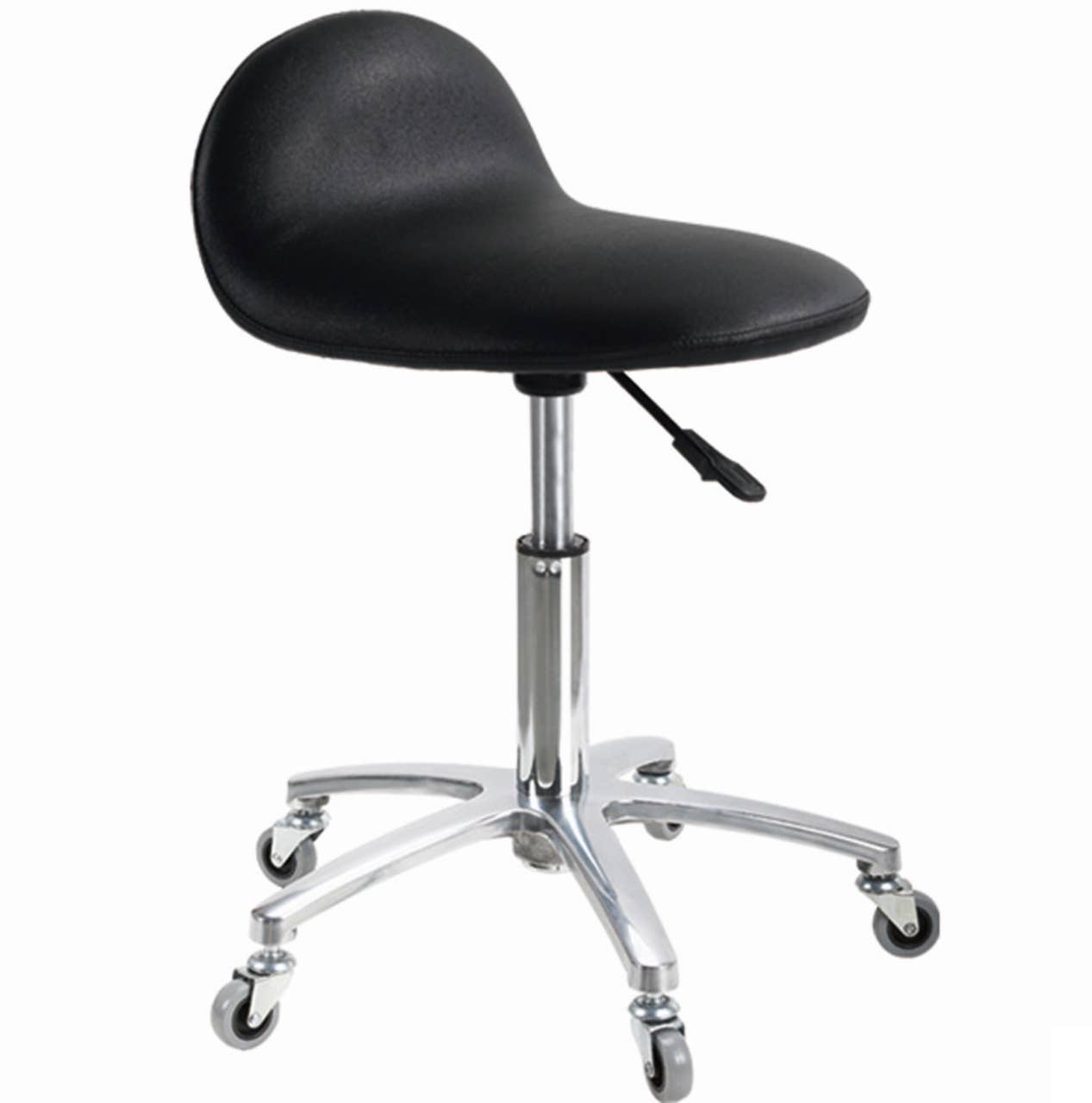 The Kelly Hair and Facial salon stool. Classic, fashionable, ergonomic and solid die-cast base with polyurethane wheels. 14.5" - 20.5"