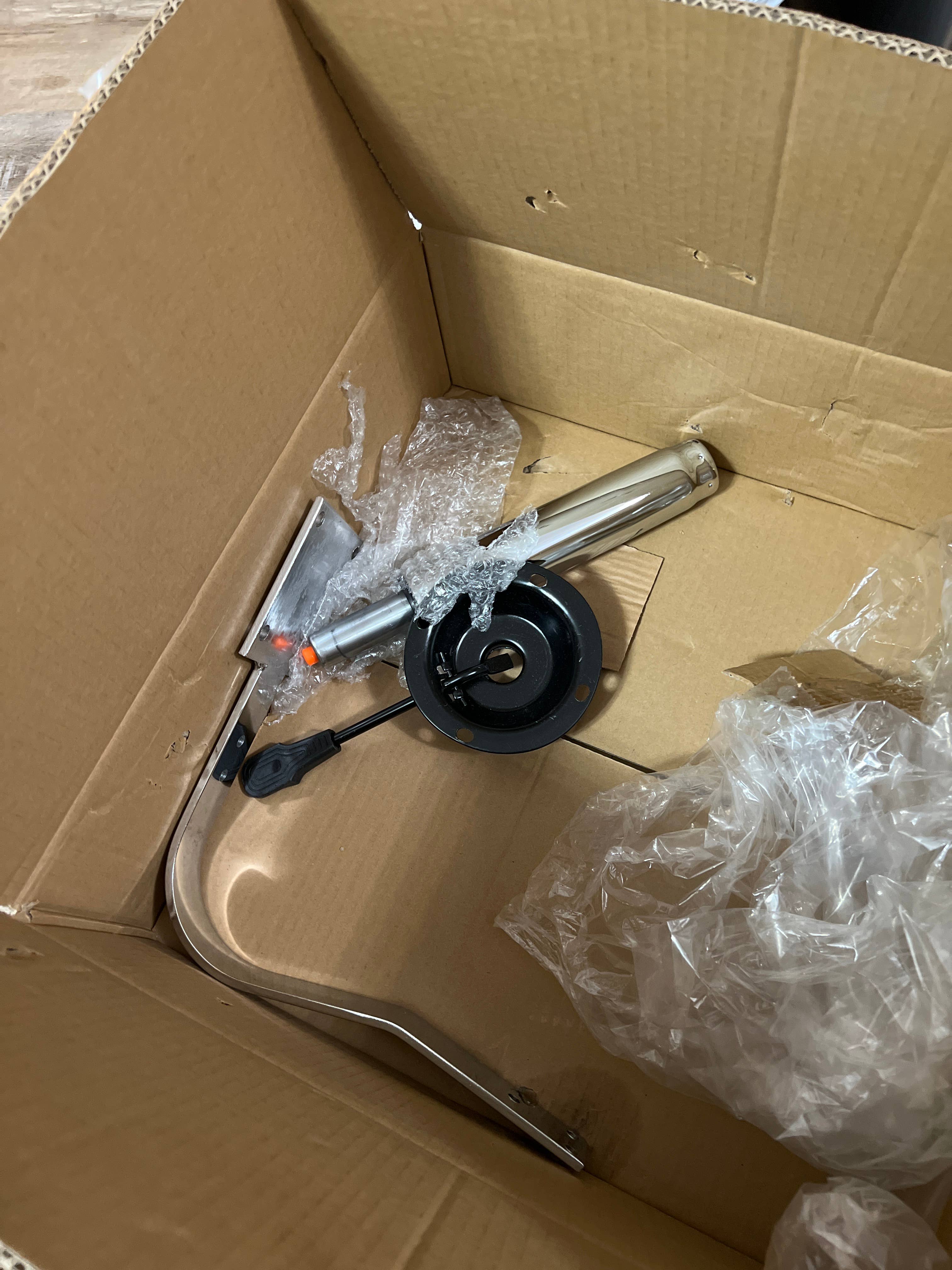 I Ordered a chair that needed to be assembled but when I opened the package the parts were all over the box, no package stuffing for security,the box was completely intact so it was not the carrier it was poor packing. The worst part, No Instructions and no hardware. Save me your passive aggressive response(s) to this review, with trying to somehow make it my fault. Its clear from your responses to other bad reviews that you take no accountability, that should take you far.