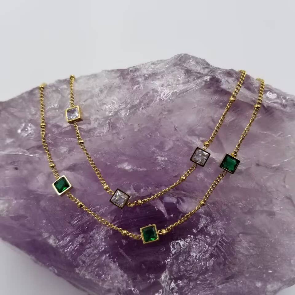 Vintage Style Square Stainless Steel Plating Inlay Zircon 18k Gold Plated Pendant Necklace. Choose color.