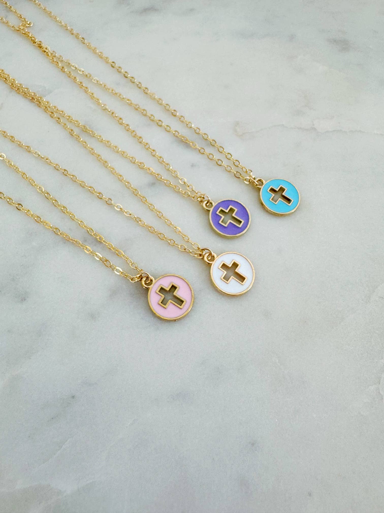 Wholesale Colorful Charm Gold Cross Necklace, Religious Jewelry