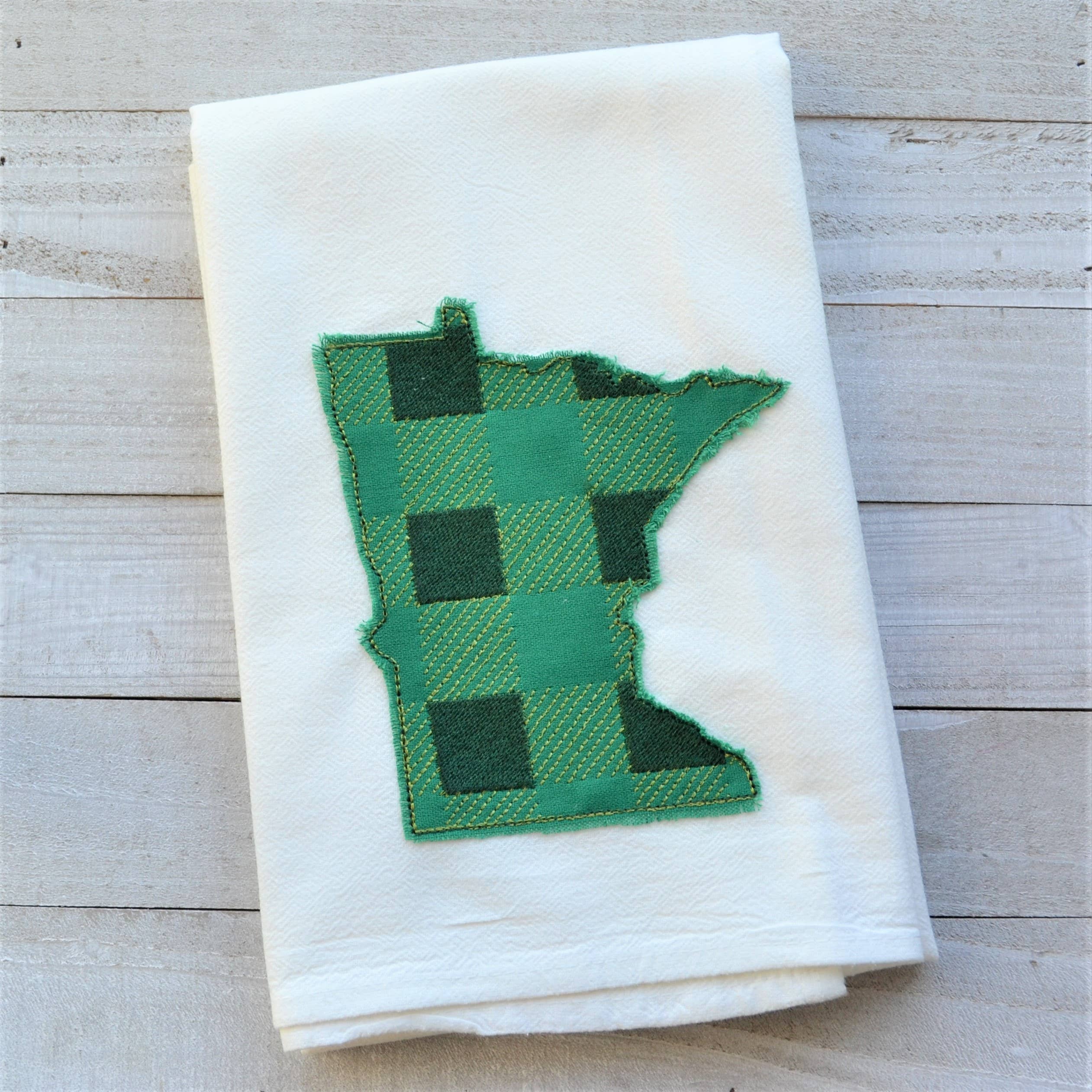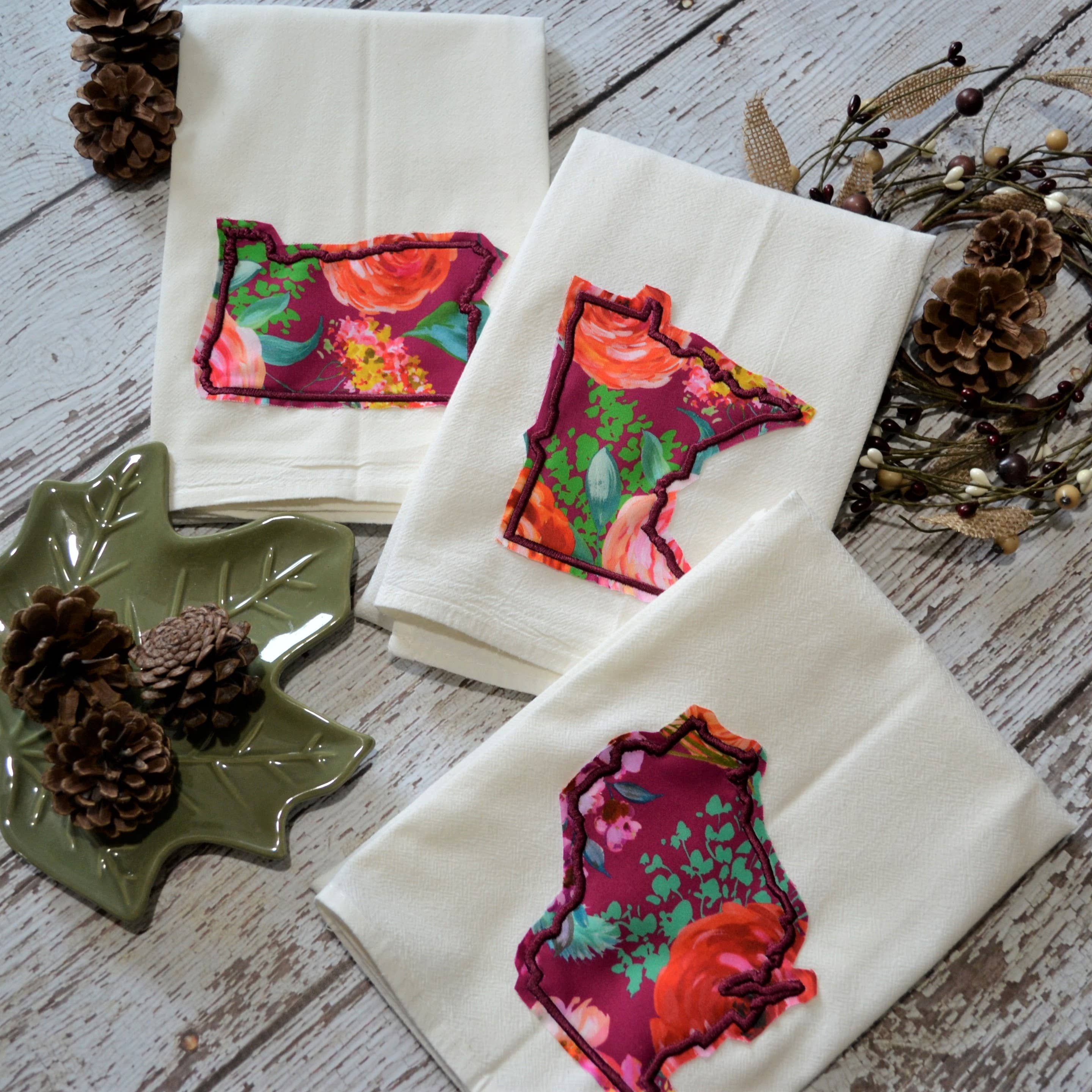 Available in all 50 states Edges outside embroidery are in a 'raggy edge' style after first wash they develop a 'frayed' vintage style look 30" x 30" (approximately 10" x 6-7" when folded) Towels are lint free, quick drying, durable, heavyweight. No plastic outer packaging. SMMS care tag included. Hang Hook attached to top of folded towel for easy display or loose packaging available when selected