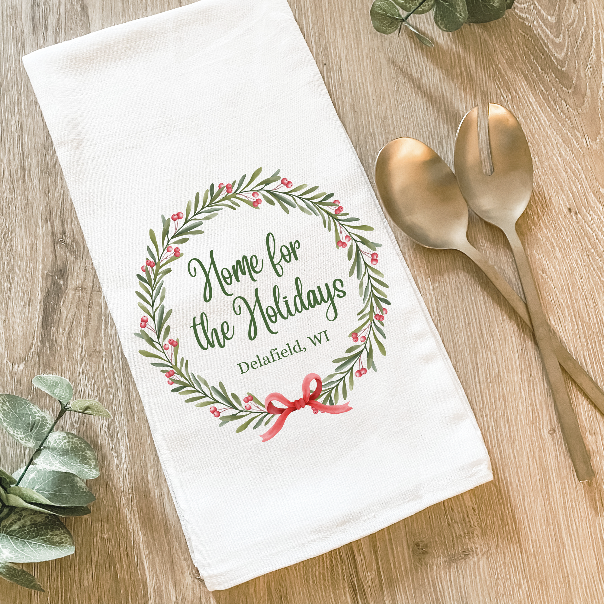 Home for the Holidays State Tea Towel - Embroidered Towel