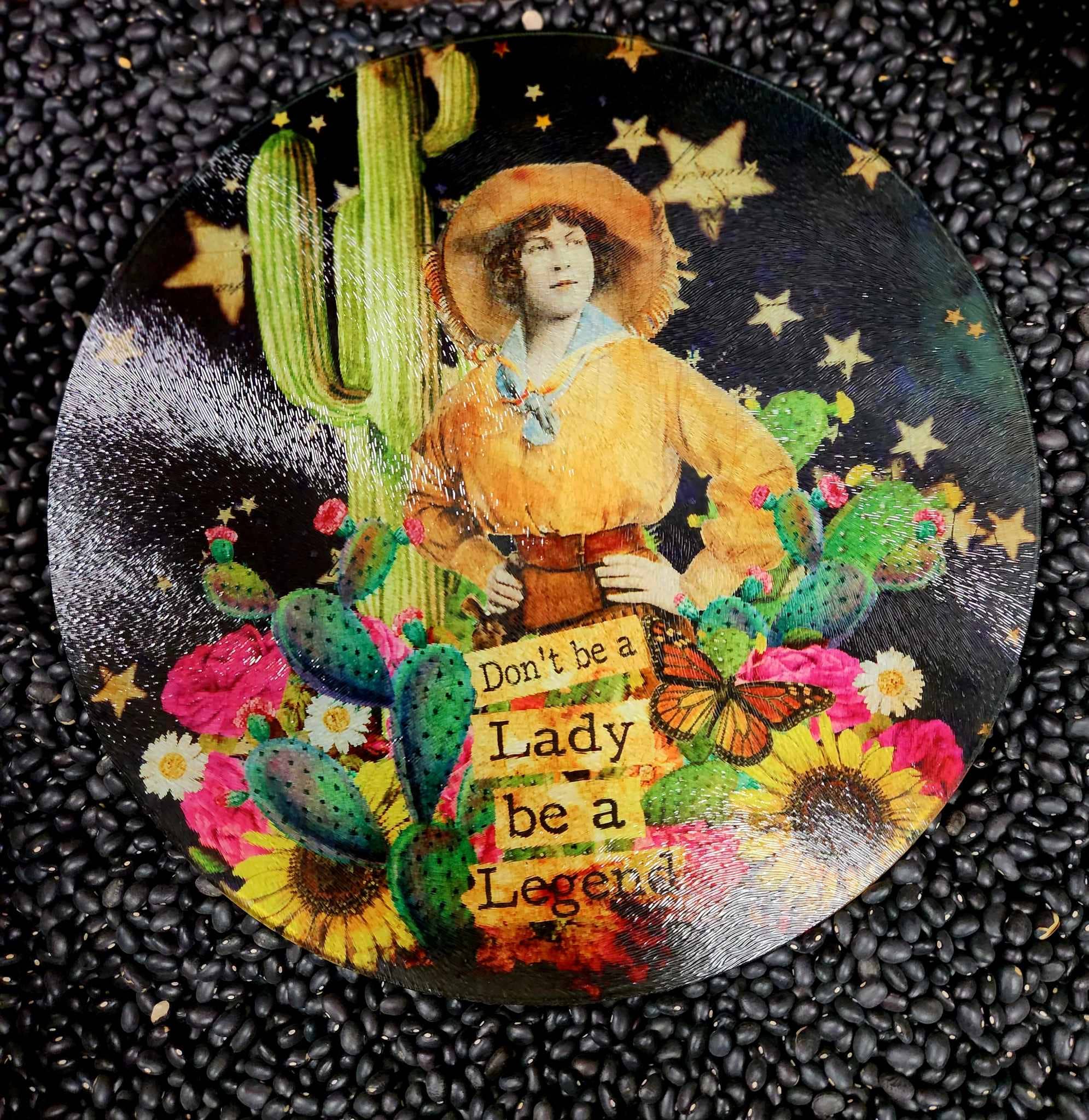 Catrina Sugar Skull - 8" x 8" Tempered Glass Cutting Board