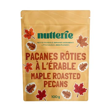 SKU: 860007125546 Made in United States Contains: Milk and Tree nuts Production: Locally sourced Shelf life: 6–12 months Storage: Shelf-stable Ingredients: Pecans, sugar, corn syrup solids, cinnamon, vanilla flavor (water, propylene glycol [E15120]), vanillin (flavor), caramel color (E150A), artificial vanilla bean (flavor), apple juice, caramel (sugar, corn syrup, liquid sugar, skim milk, palm oil, butter [cream, salt], mono and diglycerides, soy lecithin), apples, canola, sunflower and/or safflower oil, dextrose, citric acid, ascorbic acid (vitamin C), malic acid, natural flavor, salt. Weight: 170.1 g (6 oz) UPC: 860007125546