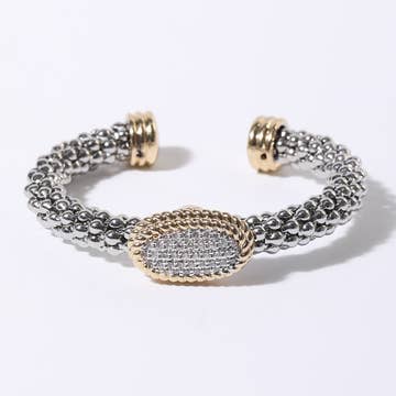 Hand beaded, tri-colored cut crystal cuff. *Features Millianna’s proprietary python skin magnetic closure. *Magnetic closure measures 1” in width with crystals spreading to 1.25” in width on the wrist. *All cuffs are made to fit a wrist size of 6.5” around. *Sizing can be made to fit smaller or larger wrists upon request at no additional cost. *This item is handmade to order, please allow a 3-day production period. *Handmade by skilled artisans in the U.S.