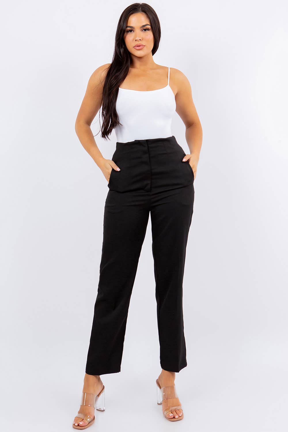 SKU: 2104 bg Made in China Aesthetic: Casual and Classic Fabric: Spandex Fit: Contemporary Occasion: Everyday and Formal Pant Length: Ankle Pant Style: Straight Pattern: Solid Rise Style: Regular Season: Core