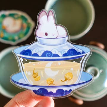 Cloud Cat Arts - Wholesale Sticker - Forest Spirit with Boba Sticker - Kawaii Bubble Tea Totoro