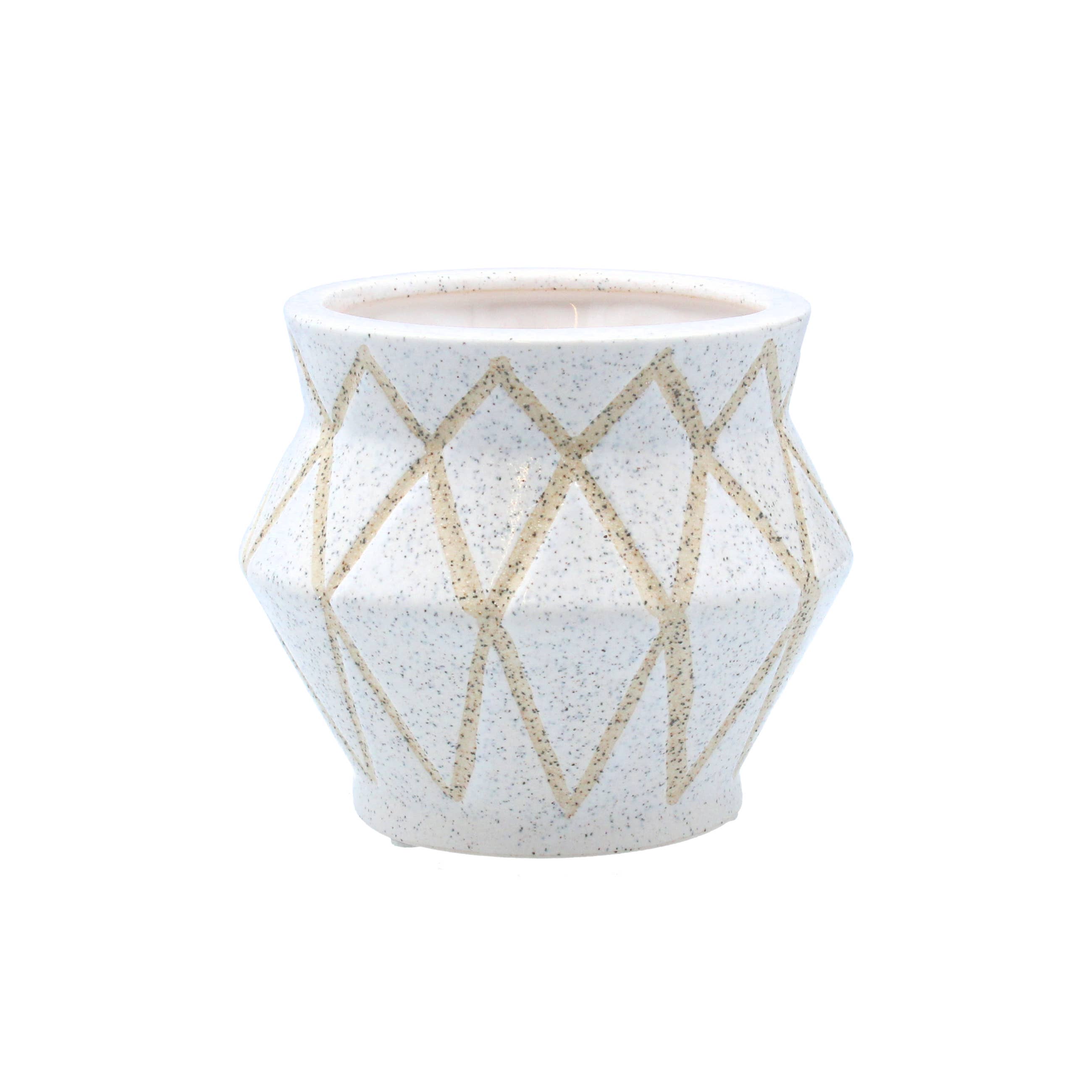Wholesale A11032: Textd linen ptrn ceram pot cvr,off wht beige,5.5x5in