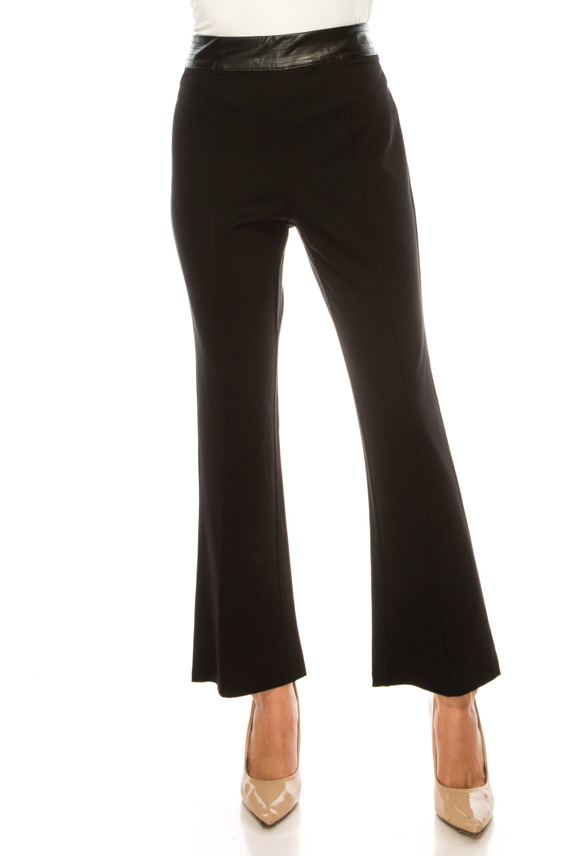 Basic solid color flare pants. Peach skin soft poly fabric. Wide waist band. Junior fit. Flare bottom. Perfect for street wear. 87% poly 13% spandex. Import. Inside pack comes S/M/L (2:2:2) 6pcs.