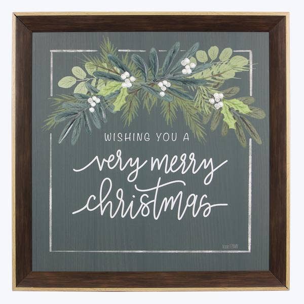 Introducing our festive and whimsical Christmas-themed art print word sign that is sure to bring joy and laughter to your holiday decor. Hang it in your living room, where friends and family gather, or in the heart of your home—the kitchen—to infuse every corner with the spirit of Christmas. • Printed with vivid colored inks on cotton canvas mounted on wood • Solid hardwood frame in shown stain colors • Sustainable American sourced wood • Made in the USA in our Utah studio • MINI 6" tall x 6" wide x 1.25" deep w/ 1/4" thick frame • SMALL 11" tall x 11" wide x 1.25" deep w/ 1/4" thick frame • MEDIUM 15" tall x 15" tall x 1.5" deep w/ 3/4" thick frame • LARGE 22" tall x 22" tall x 1.5" deep w/ 3/4" thick frame • Signs may have +/-1" variations • All signs can stand on a shelf or table (Medium & Large can also hang on a wall) • Farmhouse style frames have small rustic imperfections that make them unique