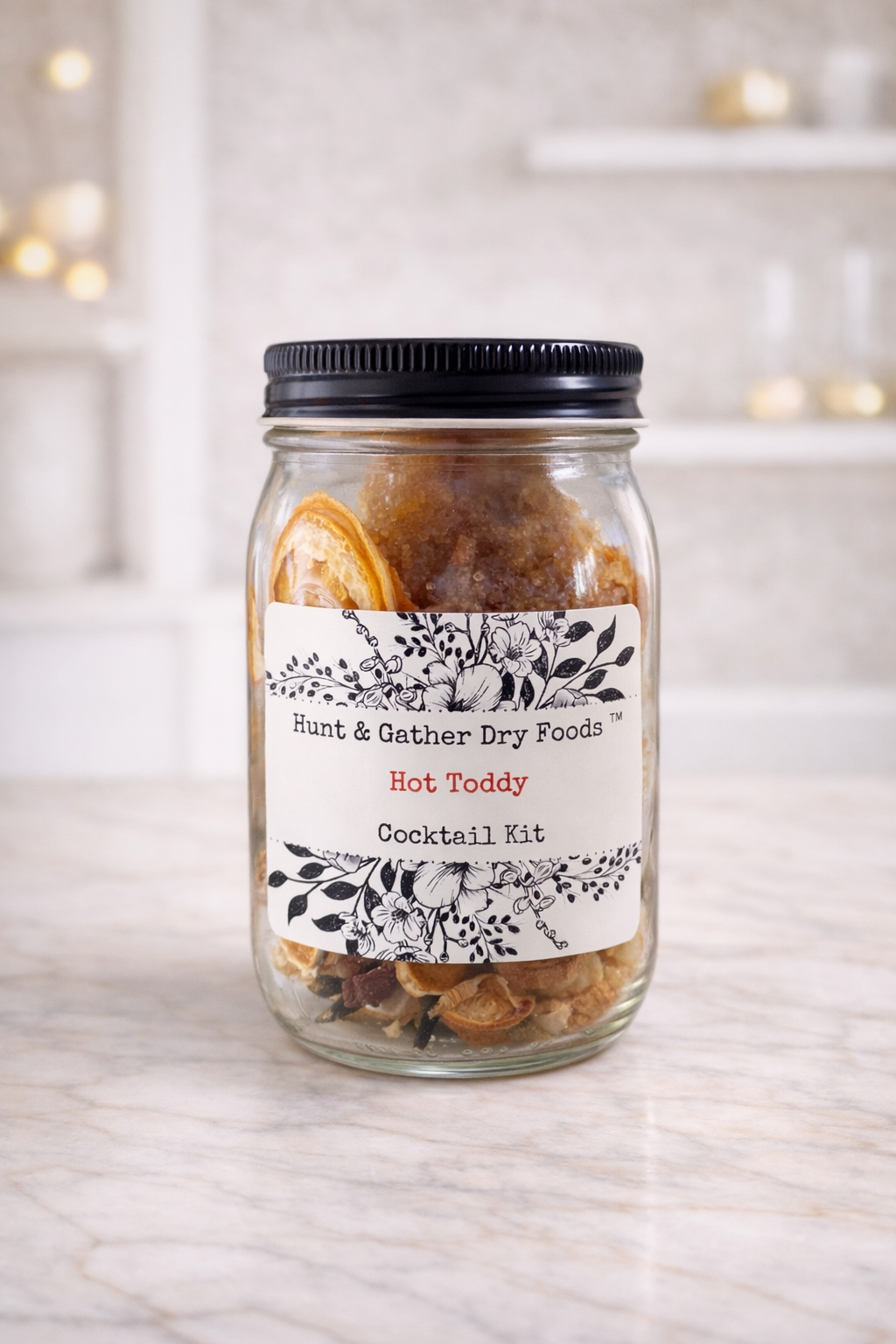 A comforting classic elevated with thoughtful craftsmanship, the Hot Toddy Cocktail Infusion Kit delivers warm citrus, gentle spice, and old-world charm in an easy, small-batch format. Inspired by the traditional toddy once enjoyed as a restorative tonic, this blend captures everything people love about the drink — soothing, aromatic, and timeless. Designed for effortless preparation with consistent, giftable results. ⸻ What’s Inside • Bright lemon • Whole cinnamon sticks • Cloves • Ginger • Apple • Orange slices • Two mitten-shaped sugar cubes All fruits are hand-selected, sliced, and dehydrated in house. Sugar cubes are handmade. ⸻ How It Works — 3 Steps · 3 Days 1. Add 12 oz of alcohol directly to the jar (whiskey, rum, or brandy recommended; guidance printed on the jar) 2. Refrigerate for 3 days to infuse 3. Strain, heat gently, and enjoy Recipes and serving suggestions are printed directly on the jar. ⸻ Yield & Value • Makes 8 cocktails per infusion • Includes a second infusion, yielding 16 cocktails total The second infusion produces a slightly lighter, equally comforting toddy — extending the value of every jar. ⸻ Mocktail Option Each kit includes dual instructions for cocktails and mocktails, making it easy to prepare a warming non-alcoholic toddy using hot water or tea. ⸻ Shelf Life & Storage • Shelf-stable for over 1 year before infusion • Up to 6 months refrigerated once infused ⸻ Wholesale Notes • Familiar, recognizable cocktail with broad appeal • Strong gifting performance and repeat purchase potential • Small-batch, preservative-free ingredients • Retail-ready packaging suitable for year-round merchandising