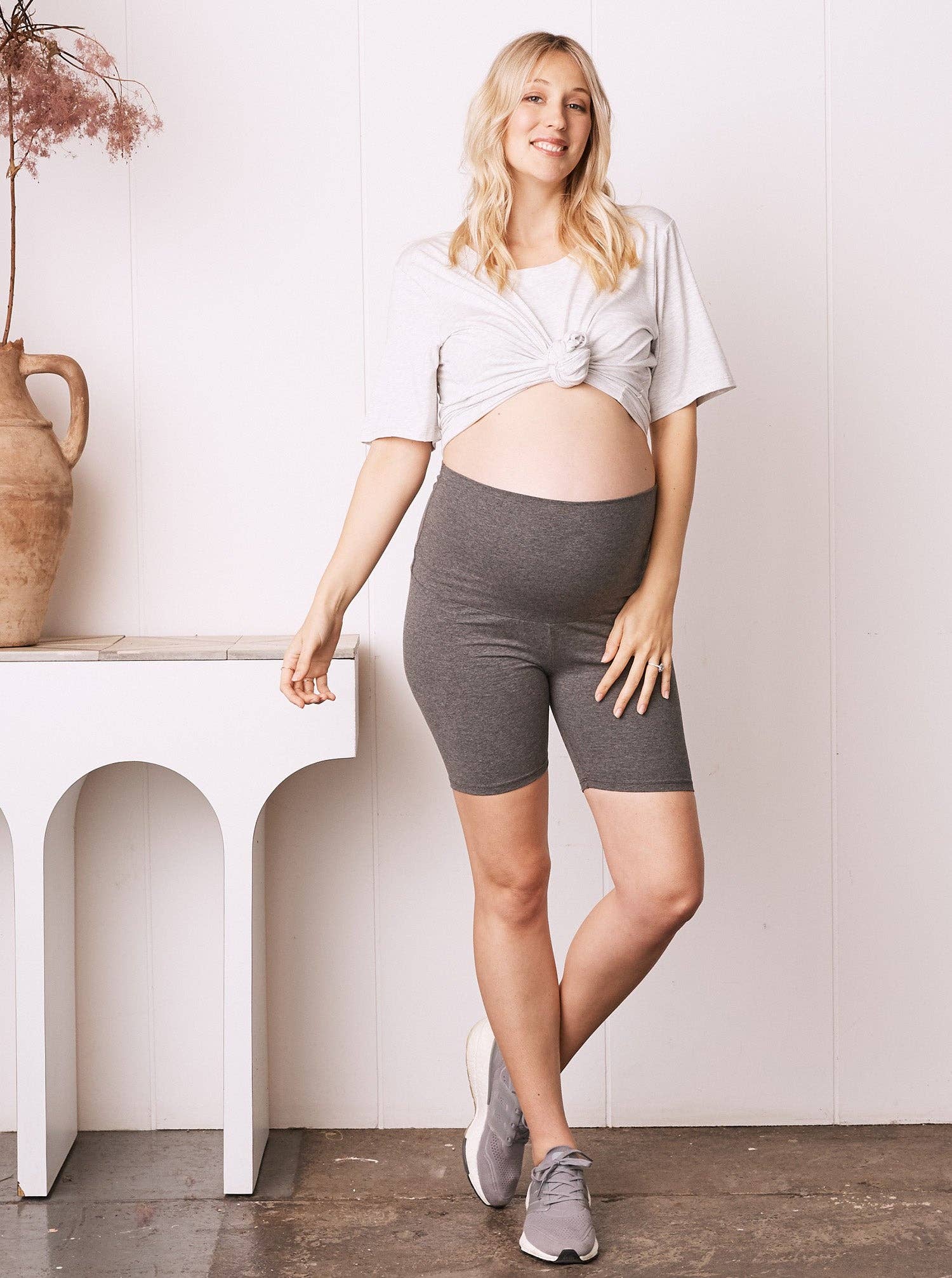 Our essential basic maternity and nursing crop top is s designed to sit comfortably over your bump and post-baby belly for every high waist bottom. * Throw on and go * Versatile, wear it alone or combined with other tops * Wearing together with matching bamboo fabric maternity pants * Designed to fit through all stages of pregnancy Color: Grey Material: 70% bamboo 25% cotton 5% elastane Style No: AC50