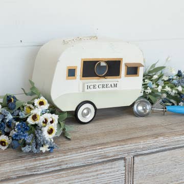 Add fun and whimsy to any room with the retro designed Shasta Camper Trailer Decorative Birdhouse. This adorable design features a mini camper with a table and chairs, a black-and-white awning, a grill—even a mini birdhouse! The rope string makes it easy to hang on a tree or the back porch. A great gift idea for the outdoor lover! Decorative only. Hand-crafted & detailed. Free standing or hang, jute rope included. Features a table and chairs, a grill. Front entrance, rear clean out. Makes a great gift for the birdwatcher. Measures: 9.5"L x 7"H x 6"W.