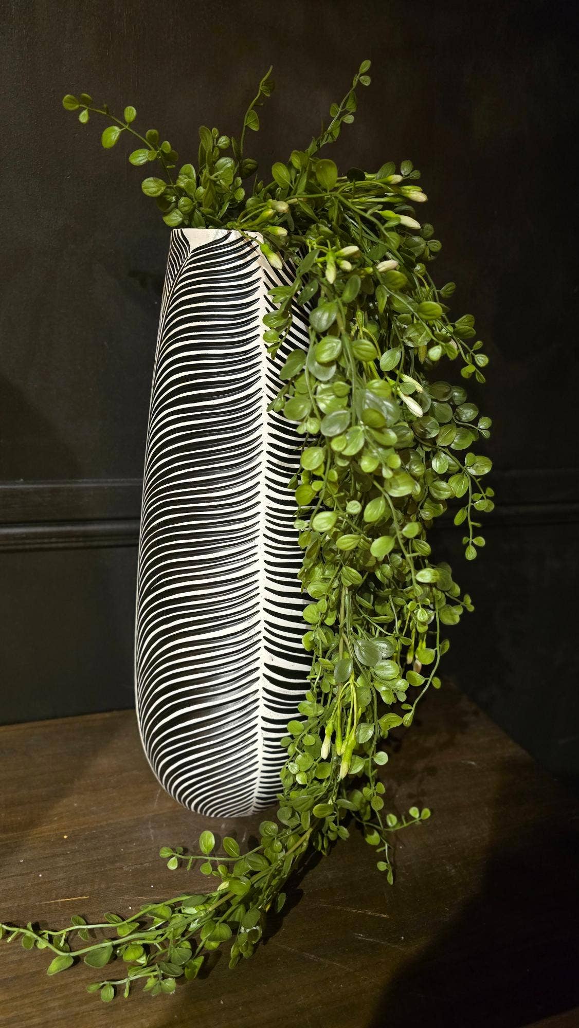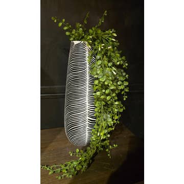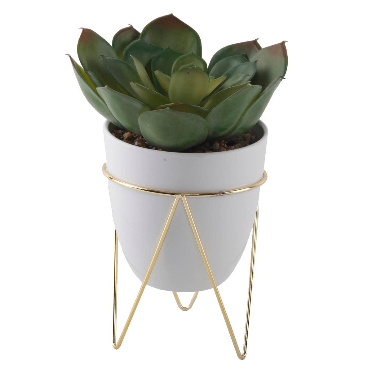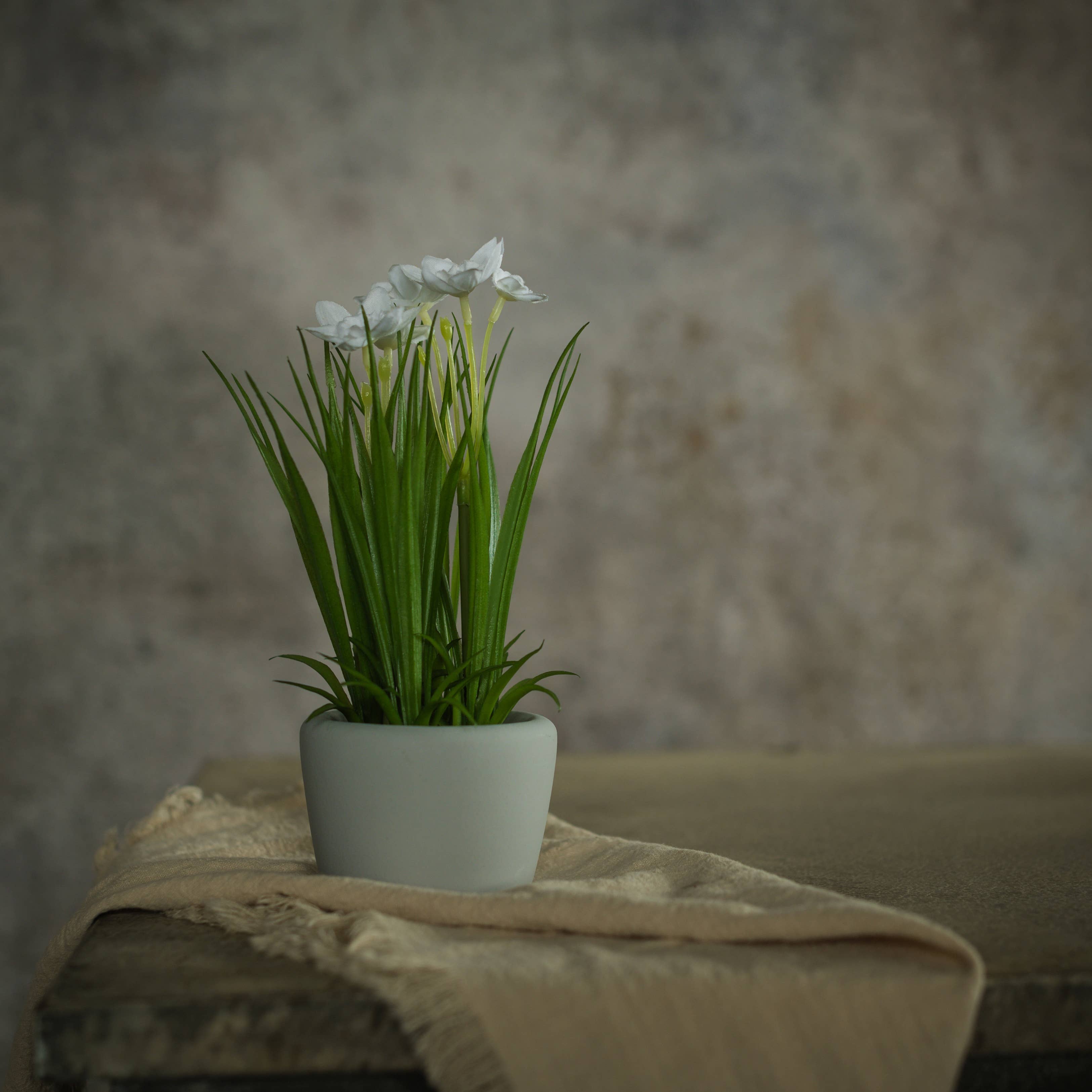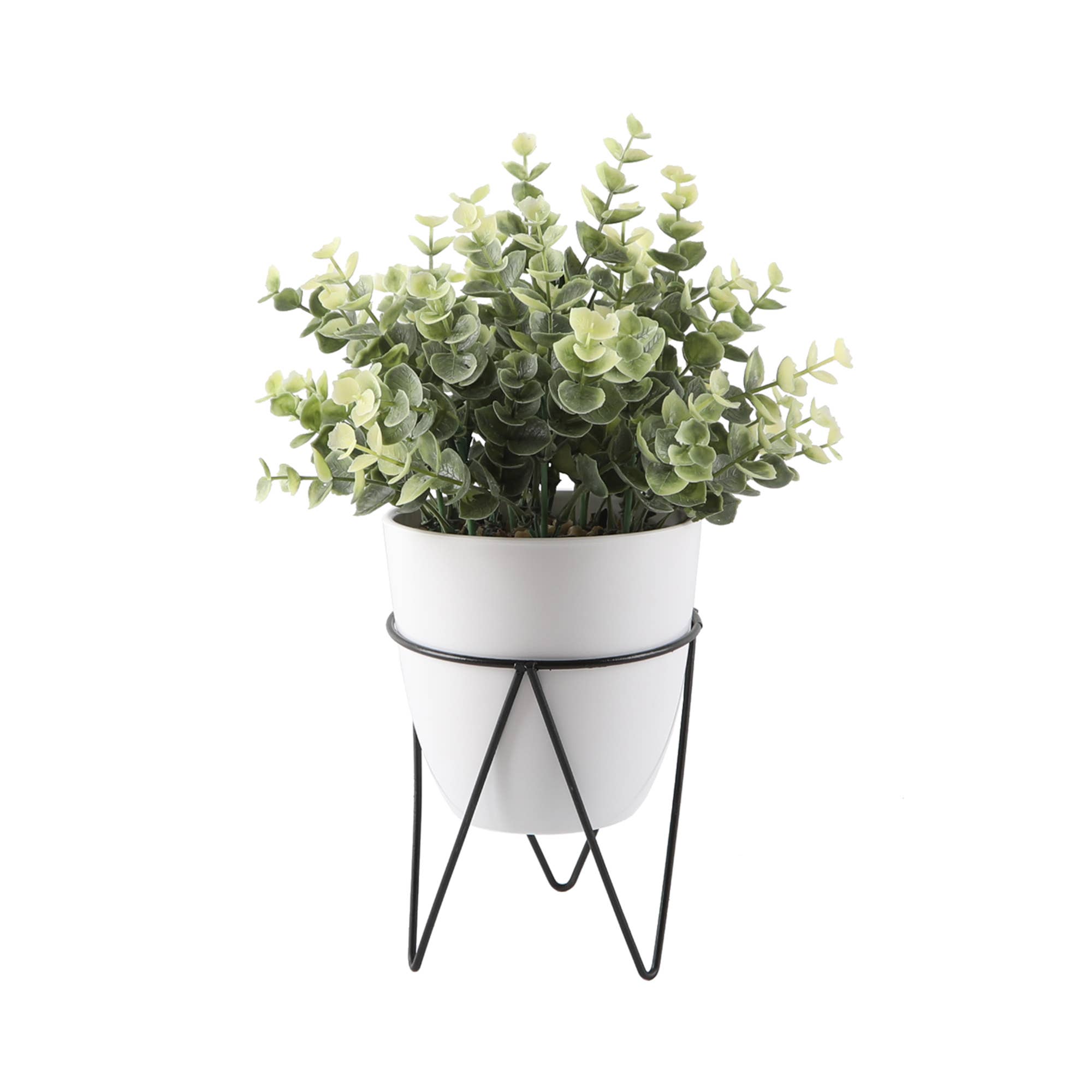 Refresh your décor collection with this Faux Snake Plant in a White Ceramic Pot with Metal Stand — a modern, easy-care greenery accent perfect for boutiques, home décor shops, gift stores, and interior styling. This lifelike sansevieria features tall, variegated leaves with realistic texture and shape, creating a bold vertical element ideal for desks, shelves, side tables, and small spaces. The plant is set in a smooth white ceramic pot, paired with a contemporary black metal stand that adds height, balance, and a clean minimalist look. Designed for long-lasting beauty with zero maintenance, this piece offers your customers a stylish way to enjoy greenery in offices, apartments, bedrooms, or retail displays. Its timeless color palette blends seamlessly with modern, Scandinavian, boho, and farmhouse interiors. Size: Approx. 15.25” H × 4.75” W (including stand) A ready-to-display decorative accent that elevates home styling with effortless greenery and a sleek, modern finish.
