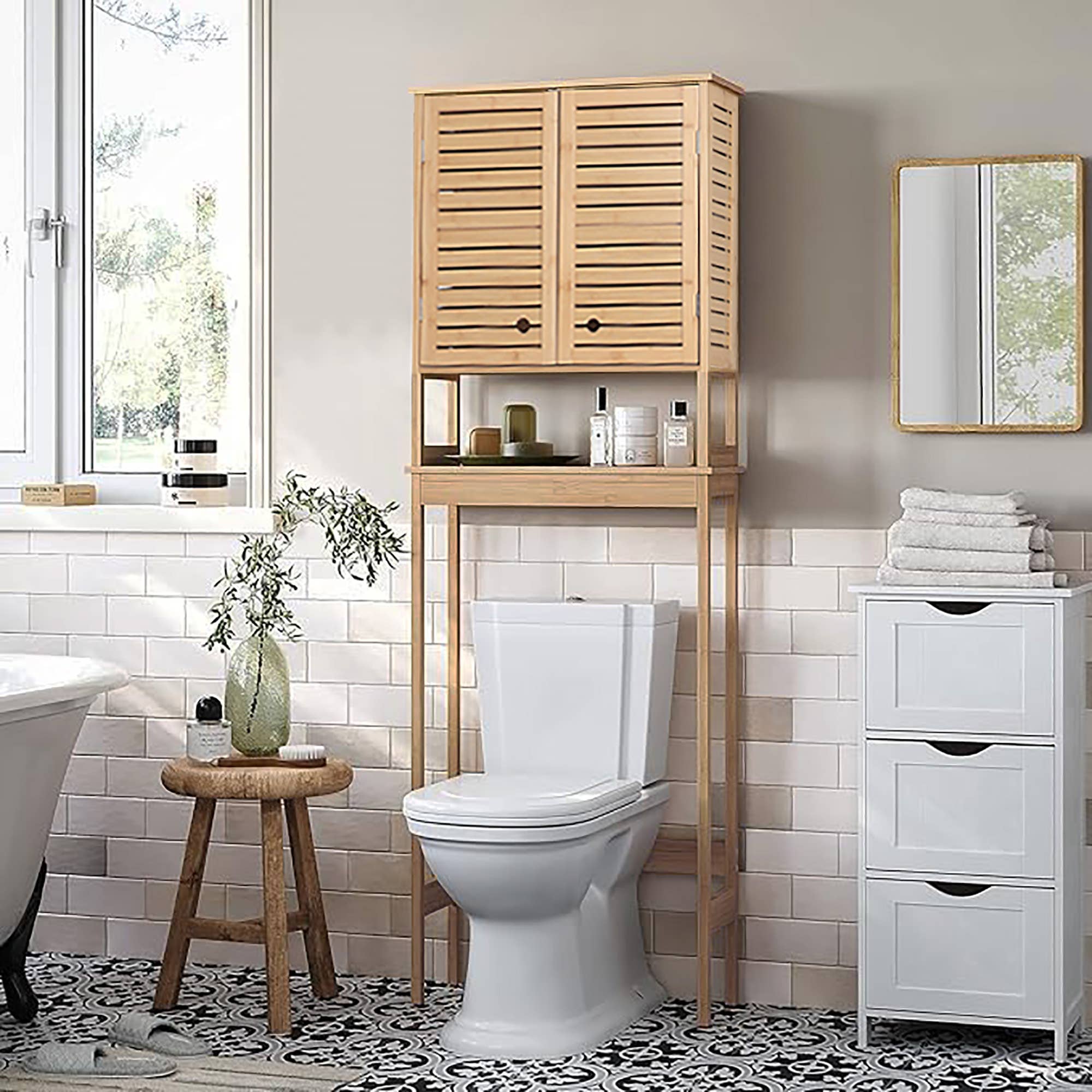 The Venus Cabinet updates the look of any space with modern styling and . Multiple shelves and a large covered cabinet give you plenty of storage options. Featuring one large mirror cabinet with four shelves (three of them adjustable) and 5 exterior open shelves (fixed) this product is ideal for your bathroom, kitchen, bedroom or garage. Easy and ready to assemble furniture with full warranty and CARB certification. Product Dimensions: 62.2 H x 20.1 W x 8.5 D.Made a elegant manufactured wood.