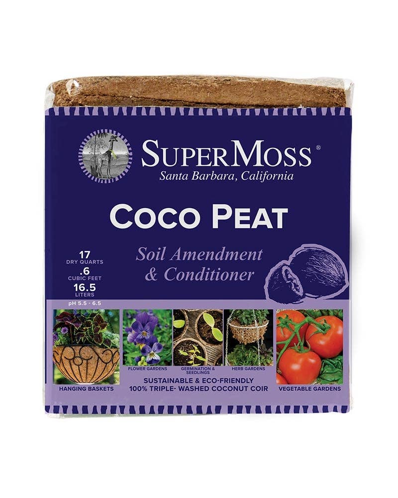 Professional growers are heralding Coconut Peat as the #1 choice in gardening for its numerous inherent qualities. SuperMoss coconut based soils are a superior eco-friendly alternative to peat moss. They absorb 33% more water to prevent root rot and take any guesswork out of watering. By being pH neutral and improving aeration, SuperMoss Coco Peat is ideal for all plants! Lastly, SuperMoss Coco Peat isn't dirty whatsoever, so go ahead and garden in your white linen! Try SuperMoss Garden Bales for your next project! They're easy to load and carry in the car, and can be conveniently stored inside the house or garage. They keep for years and hydrate in minutes. Mini Bales are designed for Hanging Baskets and Indoor Potting, while Small Bales are great for the garden and container gardening. A Small Bale is made of 4 Mini Bales inside for your convenience and savings!