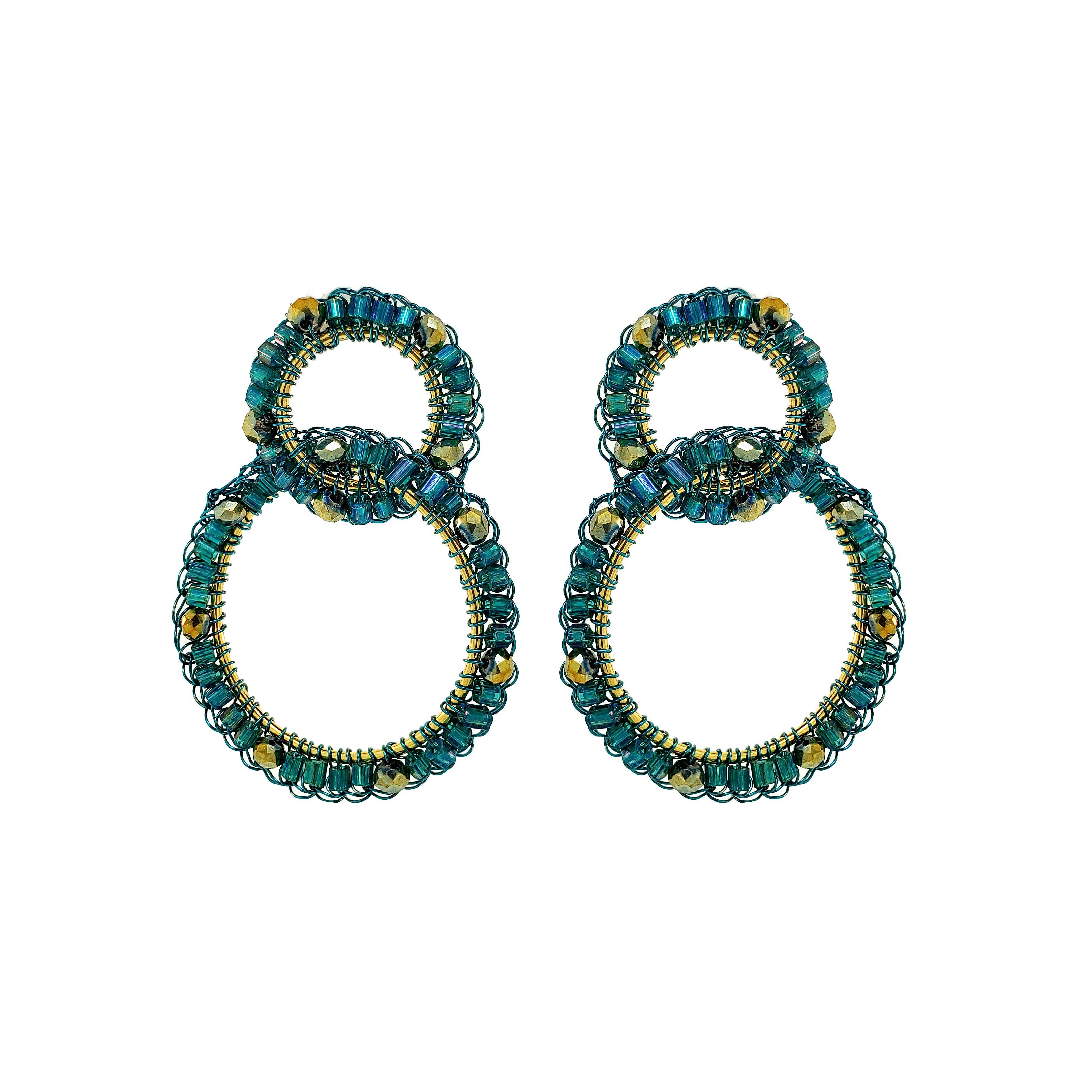 These delicate hand-crocheted hoops were fabricated by skilled Brazilian artisans. They are shiny wire crochet earrings and they create a statement look without weight or bulk! They are very comfortable to wear, light and can be worn in every occasion: day-to-night and casual-to-special. They feature enameled wire and and shiny multicolored beads. Made from non-allergenic (hypoallergenic) and nickel-free. Stunning jewelry that will last for a lifetime. Each pair of earrings takes hours to finish. The result is a remarkable piece of jewelry. Earrings  width approx. 2 inches Earrings height approx. 2 inches Hand Crocheted Enameled Wire Made in Brazil Velvet Bag Included One Year Warranty