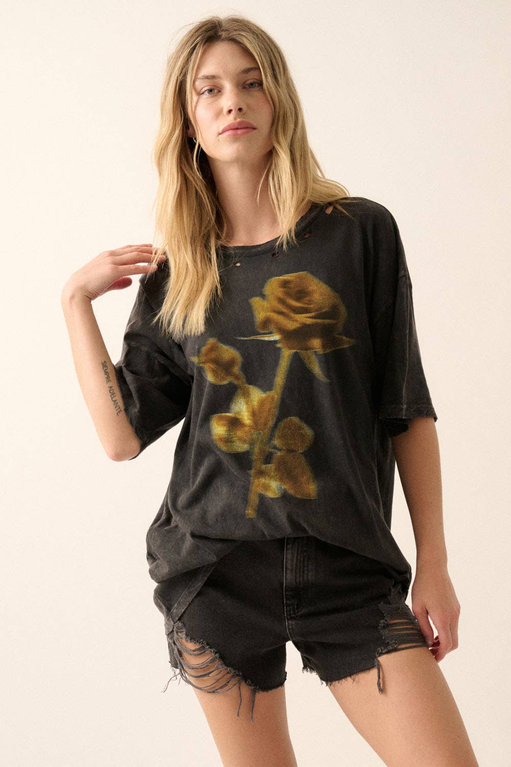 Vintage Mineral washed black relaxed crop. Dyed and printed in the USA. Size : Small / Medium / Large (4-4-4)