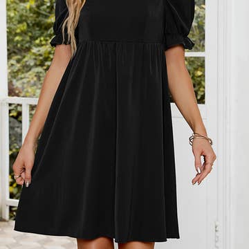 Wholesale My Heart Crepe Ruffle Chiffon Mini Dress : BLACK