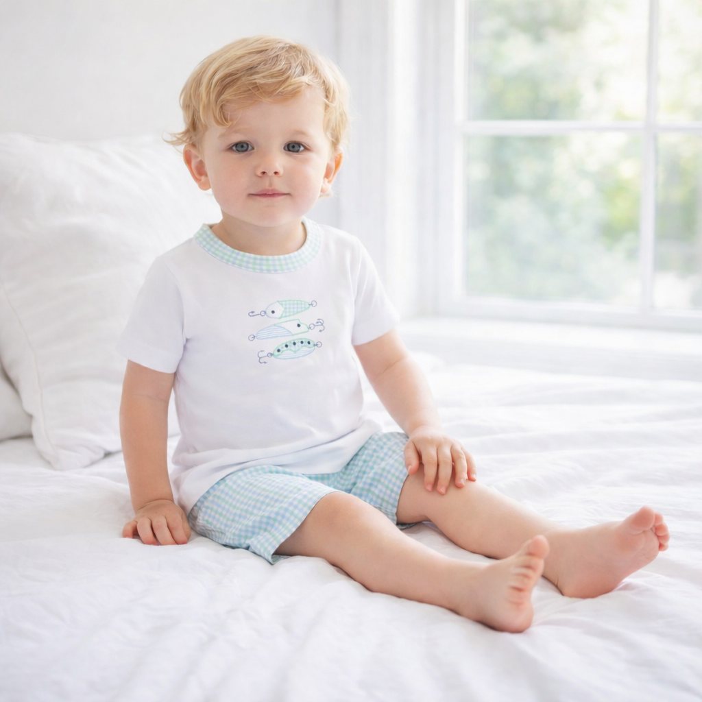 Share your Lobster or Crawfish love with this whimsical PJ Short Set. Perfect for sleep or play on a warm day! 100% organic cotton. Not treated with flame retardants for the all-natural kids! Rib-knit stretches when you move for a cozy, comfy fit! Our water-based tagless labels are PVC free, halo free and meet oeko-tex 100 class 1 for children's skin, eco-friendly gots water-based dyes.