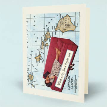 Cover Reads: "I Want To Go On Holiday This Year, To Somewhere I've Never Been Before" "How About The Kitchen!" Inside Reads: Blank SKU: 9732K Occasion: All Occasions Greeting Card Style: Very Trashy Paper Stock: Card paper from mixed sources Introduced: January 15, 2015